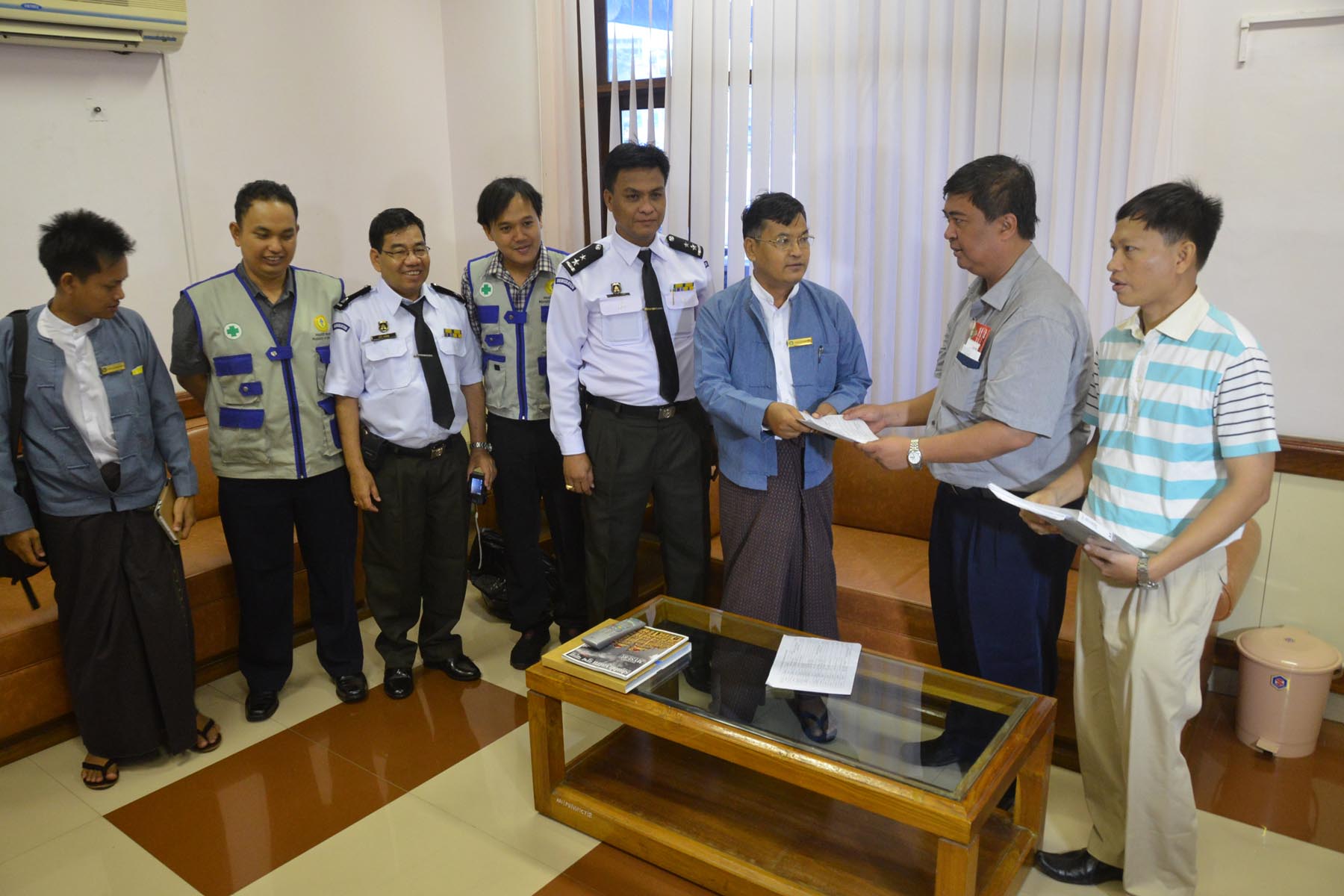 ၁။ အမျိုးသားသဘာ၀ဘေးအန္တရာယ်ဆိုင်ရာစီမံခန့်ခွဲမှုကော်မတီ၏ လမ်းညွှန်ချက်အရ အိန္ဒိယနိုင်ငံ၊ ပို့ဘလဲယားမြို့ရှိ အကျဉ်းထောင်တွင် ပြစ်ဒဏ်ကျခံပြီး မြန်မာနိုင်ငံသားမှန်ကန်ကြောင်း အတည်ပြုပြီးသူ မြန်မာရေလုပ်သား (၂၄၃) ဦးအနက် ဒုတိယအသုတ်အဖြစ် ရေလုပ်သား (၈၅) ဦးအား ခေါ်ယူရန် ကယ်ဆယ်ရေးနှင့် ပြန်လည်နေရာချထားရေးဦးစီးဌာနမှ ညွှန်ကြားရေးမှူး ဦးချွမ်ဟရဲ ဦးစီးသည့်ကိုယ်စားလှယ်အဖွဲ့သည် ရန်ကုန်အပြည်ပြည်ဆိုင်ရာလေဆိပ်မှ (၃-၁၁-၂၀၁၅) နေ့၊ (၁၂:၀၀) အချိန်တွင် အပြည်ပြည်ဆိုင်ရာမြန်မာ့လေကြောင်း (MAI) မှ စင်းလုံးငှားလေယာဉ်ဖြင့် အိန္ဒိယနိုင်ငံ၊ ပို့ဘလဲယားမြို့သို့ထွက်ခွာခဲ့ရာ ဒေသစံတော်ချိန် (၁၃:၅၅) အချိန်တွင် ပို့ဘလဲယားမြို့လေဆိပ်သို့ ရောက်ရှိခဲ့ပါသည်။ ၎င်းနောက်ရေလုပ်သားများအား စိစစ်လက်ခံပြီး ဒေသစံတော်ချိန် (၁၅:၀၅) အချိန်တွင် ပို့ဘလဲယားမြို့လေဆိပ်မှ ပြန်လည်ထွက်ခွာခဲ့ရာ ရန်ကုန်အပြည်ပြည်ဆိုင်ရာလေဆိပ်သို့ (၁၆:၁၀) အချိန်တွင် ရောက်ရှိခဲ့ပါသည်။ ရေလုပ်သားများအား ငါးလုပ်ငန်းဦးစီးဌာနမှ ညွှန်ကြားရေးမှူးဦးကျော်မင်းနှင့်တာ၀န်ရှိသူများ၊ ရေလုပ်သားများ၏နေရပ်ဒေသများဖြစ်သော ဧရာ၀တီတိုင်းဒေသကြီးနှင့် ရခိုင်ပြည်နယ်တို့မှအစိုးရအဖွဲ့ကိုယ်စားလှယ်များ၊ ကယ်ဆယ်ရေးနှင့် ပြန်လည်နေရာချထားရေးဦးစီးဌာနမှ ရန်ကုန်တိုင်းဒေသကြီးဦးစီးမှူး ဦးကြည်သာနှင့်တာ၀န်ရှိသူများ၊ မြန်မာနိုင်ငံပင်လယ်ကမ်းဝေးငါးဖမ်းလုပ်ငန်းရှင်များအသင်းမှတာ၀န်ရှိသူများနှင့် IOM အဖွဲ့တို့မှ ကြိုဆိုခဲ့ကြပါသည်။