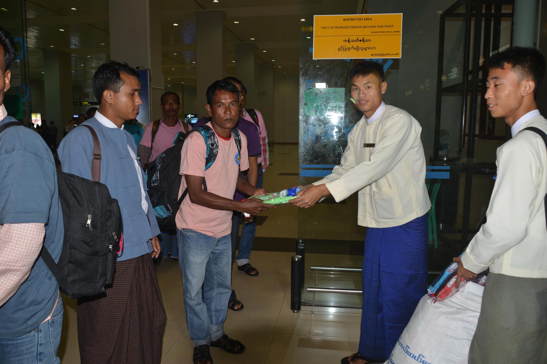 ၂။ ပြန်လည်ရောက်ရှိခဲ့သည့် ရေလုပ်သား (၈၅) ဦးမှာ ဧရာ၀တီတိုင်းဒေသကြီးမှ (၇၇) ဦး၊ ရခိုင်ပြည်နယ်မှ (၈) ဦးတို့ဖြစ်ပါသည်။ ၎င်းရေလုပ်သားများအား ကယ်ဆယ်ရေးနှင့် ပြန်လည်နေရာချထားရေးဦးစီးဌာနမှ ညွှန်ကြားရေးမှူး ဦးချွမ်ဟရဲနှင့် ငါးလုပ်ငန်းဦးစီးဌာနမှ ညွှန်ကြားရေးမှူးဦးကျော်မင်းတို့မှ လိုအပ်သည်များမှာကြားခဲ့ပါသည်။ ရေလုပ်သားများအား ငါးလုပ်ငန်းဦးစီးဌာနမှ တစ်ဦးလျှင် (၅၀၀၀/-)နှုန်း၊မြန် မာနိုင်ငံပင်လယ်ကမ်းဝေးငါးဖမ်းလုပ်ငန်းရှင်များအသင်းမှ တစ်ဦးလျှင်(၅၀၀၀/-)နှုန်း၊ ကယ်ဆယ်ရေးနှင့် ပြန်လည်နေရာချထားရေးဦးစီးဌာနမှ တစ်ဦးလျှင် ကျားလုံချည်(၁)ထည်၊ တီရှပ်(၁)ထည်၊ တဘက်(၁)ထည်နှုန်း၊ IOM အဖွဲ့မှ တစ်ဦးလျှင်(၂၅၀၀၀/-)နှုန်းနှင့် ငွေဖြည့်ကဒ်(၁၀၀၀/-)ပါ ဆင်းကတ်(၁)ခုတို့ကို ထောက်ပံ့ခဲ့ပြီး၊ ပြည်တွင်းခရီးစရိတ်နှင့် စားစရိတ်ကုန်ကျငွေများကို ရေလုပ်သားများ၏နေရပ်ဒေသများဖြစ်သော ဧရာ၀တီတိုင်းဒေသကြီး၊ တနင်္သာရီတိုင်းဒေသကြီးနှင့် ရခိုင်ပြည်နယ်အစိုးရအဖွဲ့တို့မှ လှူဒါန်းထောက်ပံ့ခဲ့ပါသည်။