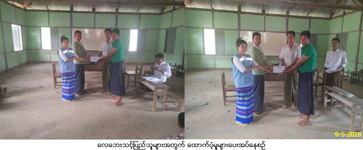 ဘေးအန္တရာယ်ဆိုင်ရာစီမံခန့်ခွဲမှုဦးစီးဌာန၊ ပခုက္ကူခရိုင်ဦးစီးမှူးရုံးနှင့် ဆိပ်ဖြူမြို့နယ်ဦးစီးမှူးရုံးမှ တာဝန်ရှိသူများသည် ဆိပ်ဖြူမြို့နယ်၊ သက္ကယ်ကျင်းကျေးရွာအုပ်စု၊ သက္ကယ်ကျင်းကျေးရွာတွင် (၈-၅-၂၀၁၈) ရက်နေ့တွင် ဖြစ်ပွားခဲ့သော လေဘေးကြောင့် အမိုးလန် အိမ်ခြေ (၂၅)လုံး၊ အိမ်ထောင်စု(၂၅)စု၊ လူဦးရေ (၇၉)ဦး ဘေးသင့်ခဲ့ရာ အိမ်ဆောက်ပစ္စည်းဖိုး (၇၁၀၀၀၀ိ/-)ကျပ်၊ ဆန်ရိက္ခာဖိုး (၁၆၅၉၀၀ိ/-)ကျပ်၊ ကယ်ဆယ်ရေးပစ္စည်း(၉)မျိုး၊ စုစုပေါင်း (၈၇၅၉၀၀ိ/) (ကျပ်ရှစ်သိန်းခုနှစ်သောင်းငါးထောင့်ကိုးရာတိတိ)တို့အား (၉-၅-၂၀၁၈) ရက်နေ့တွင် ဆိပ်ဖြူမြို့နယ်အထွေထွေအုပ်ချုပ်ရေးဦးစီးဌာနမှ တာဝန်ရှိသူများနှင့်အတူ ဘေးသင့်ပြည်သူများ၏ လက်ဝယ်အရောက် ထောက်ပံ့ပေးအပ်ခဲ့ ကြောင်း သတင်းရရှိပါသည်။