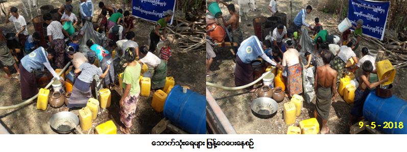 (၂၀၀) လုံး၊ အိမ်ထောင်စု (၂၀၀) စု၊ လူဦးရေ (၁၀၀၀) ဦးတို့အတွက် ရေဂါလံ (၈၀၀၀) အား (၉-၅-၂၀၁၈) ရက်နေ့ (၁၃း၀၀) နာရီအချိန်တွင် သွားရောက်ဖြန့်ဝေပေးခဲ့ကြောင်း သတင်းရရှိပါသည်။
