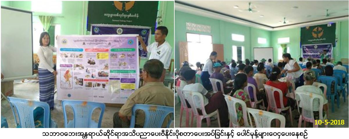 ဘေးအန္တရာယ်ဆိုင်ရာစီမံခန့်ခွဲမှုဦးစီးဌာန၊ ပြည်ထောင်စုနယ်မြေ၊ နေပြည်တော်တိုင်းဦးစီးမှူးရုံးမှ တာဝန်ရှိသူများသည် (၁၀.၅.၂၀၁၈)ရက်နေ့ (၁၃း၀၀)နာရီချိန်မှ (၁၄း၃၀)နာရီအချိန်ထိ လယ်ဝေးမြို့နယ်၊ သော်မှော်ကုန်းကျေးရွာအုပ်စု၊ သော်မှော်ကုန်းကျေးရွာ၌ ကျေးရွာသူ/ကျေးရွာ သားလူဦးရေ(၁၀၀)ဦးခန့်အား သဘာဝဘေးအသိပညာပေးဟောပြောခဲ့ပြီး တက်ရောက်လာသူများအား လက်ကမ်းစာစောင်များ၊ သဘာဝဘေးဗီနိုင်းပိုစတာများပေးအပ်ခြင်းနှင့် ပေါင်မုန့်များဝေငှပေးခဲ့ကြောင်း သတင်းရရှိပါသည်။