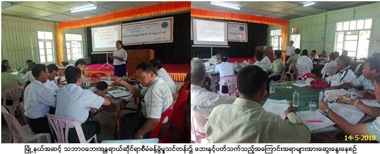 ဘေးအန္တရာယ်ဆိုင်ရာစီမံခန့်ခွဲမှုဦးစီးဌာန၊ ကျိုင်းတုံခရိုင်ဦးစီးမှူးရုံးမှ လက်ထောက်ညွှန်ကြားရေးမှူး၊ ဒေါ်ခင်သန္တာရွှေနှင့် ဒုတိယဦးစီးမှူး၊ဒေါ်စန္ဒာရွှေတို့နှင့် မိုင်းတုံမြို့နယ်၊ ထွေ/အုပ်ရုံးမှ တာဝန်ရှိသူများနှင့်အတူပူးပေါင်း၍ (၁၄.၅.၂၀၁၈)ရက်နေ့တွင် မြို့နယ်အဆင့်သဘာဝဘေးအန္တရာယ်ဆိုင်ရာစီမံခန့်ခွဲမှုသင်တန်းအား ဖွင့်လှစ်ကျင်းပခဲ့ရာ မိုင်းတုံမြို့နယ်ရှိ ရပ်ကွက်/ကျေးရွာအုပ်ချုပ်ရေးမှူးများ၊ ရပ်ကျေးစာရေးများ၊ အရံမီးသတ်တပ်ဖွဲ့ဝင်များ၊ ကြက်ခြေနီ၊ လူမှုရေးအသင်းအဖွဲ့များအပါအဝင် စုစုပေါင်းသင်တန်းတက်ရောက်သူ (၅၀)ဦးခန့်တက်ရောက်ခဲ့ပြီး သင်တန်းကာလမှာ (၁၄.၅.၂၀၁၈)ရက်နေ့မှ (၁၅.၅.၂၀၁၈)ရက်နေ့ထိ(၂)ရက်တာကြာမြင့်မည်ဖြစ်ကြောင်း သတင်းရရှိပါသည်။