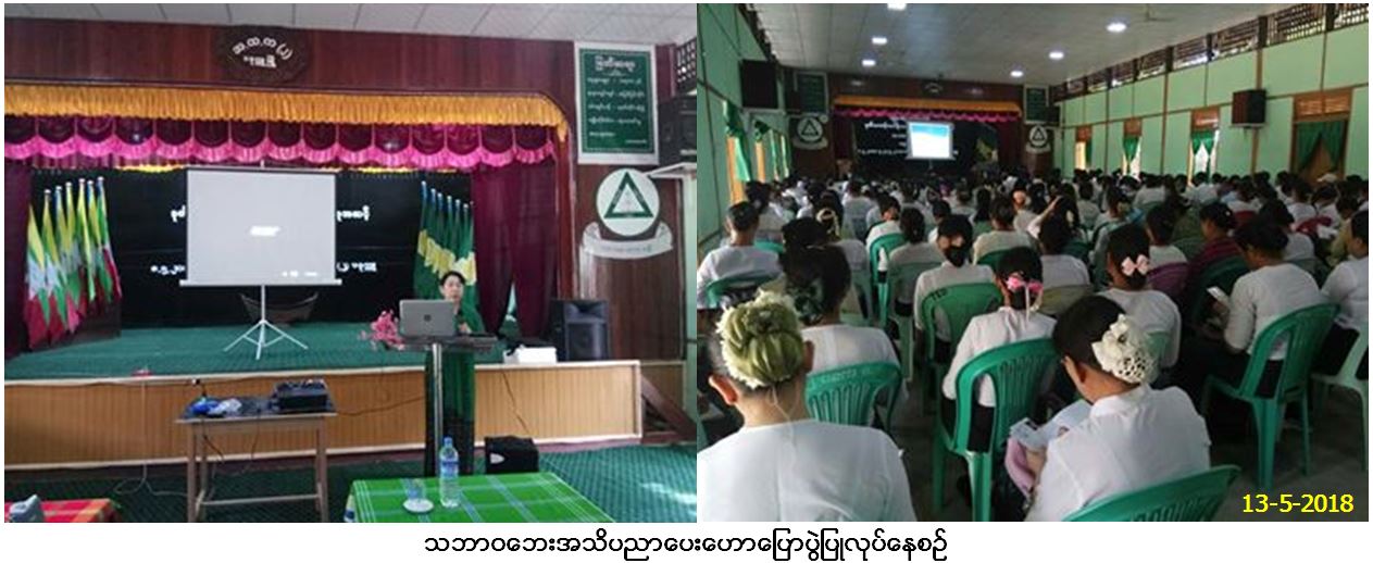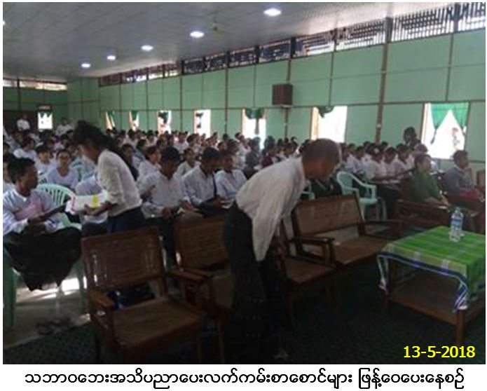 လူမှုဝန်ထမ်း၊ ကယ်ဆယ်ရေးနှင့်ပြန်လည်နေရာချထားရေးဝန်ကြီးဌာန၊ ဘေးအန္တရာယ်ဆိုင်ရာစီမံခန့်ခွဲမှုဦးစီးဌာန၊ ပခုက္ကူခရိုင်ဦးစီးမှူးရုံးမှ လက်ထောက်ညွှန်ကြားရေးမှူး၊ ဦးနေဝင်းနှင့် တာဝန်ရှိသူများ၊ မြို့နယ်ပညာရေးမှူး၊ ဒေါ်သန်းသန်းဌေးတိ့ုသည် (၁၃-၅-၂၀၁၈) ရက်နေ့၊ နံနက် (၀၉း၀၀) နာရီမှ (၁၀း၃၀)နာရီအထိ ပခုက္ကူမြို့နယ်၊ အ.ထ.က(၂)ကျောင်း၌ ဆရာ၊ ဆရာမများမွမ်းမံသင်တန်းတွင် ငလျင်ဘေးနှင့် ပက်သက် သည့်အသိပညာပေးဟောပြောပွဲများပါဝင်ဆွေးနွေးခဲ့ရာ တက်ရောက်လာသူ (၂၃၀)ဦးအား သဘာဝဘေးအန္တရာယ်ဆိုင်ရာ အသိပညာပေးဟောပြောပွဲများဆွေးနွေးခြင်း၊ ငလျင်ဘေးနှင့်ပတ်သက်၍ ဆောင်ရန်ရှောင်ရန်များ၊ ငလျင်လှုပ်ခတ်စဉ်အတွင်း နေထိုင်ရမည့်အနေအထားအား လက်တွေ့သရုပ်ပြခြင်းနှင့် လက်ကမ်းစာစောင်များဖြန့်ဝေပေးခြင်းများပြုလုပ်ဆောင်ရွက်ခဲ့ကြောင်း သတင်းရရှိပါသည်။