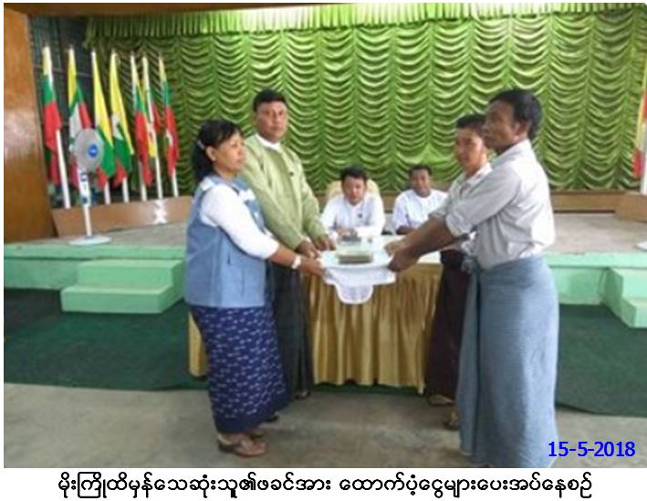 ဘေးအန္တရာယ်ဆိုင်ရာစီမံခန့်ခွဲမှုဦးစီးဌာန၊ ဖျုုာပုံခရိုင်ဦးစီးမှူးရုံးမှ တာဝန်ရှိသူများသည် (၁၂-၅-၂၀၁၈)ရက်နေ့ (၁၄း၃၀)နာရီအချိန်တွင် ကျိုက်လတ်မြို့နယ်၊ ကျွဲသလင်းရွာမကျေးရွာနေ မောင်ဝဏ္ဏအောင်အသက်(၁၃)နှစ်၊ ဆဌမတန်းအောင် ကျောင်းသားသည် အစ်ကိုဝမ်းကွဲများဖြင့် လယ်ထွန်နေရာတွင်ရှိနေစဉ် မိုးကြိုးထိမှန်ပြီး သေဆုံးခဲ့ခြင်းအတွက် သေဆုံးသူ၏ဖခင်အား ထောက်ပံ့ငွေကျပ်(၃)သိန်းတိတိအား လွှတ်တော်ကိုယ်စားလှယ်များ၊ မြို့နယ်အုပ်ချုပ်ရေးမှူးတို့၏ရှေ့မှောက်၌ (၁၅-၅-၂၀၁၈)ရက်နေ့တွင် သွားရောက်ထောက်ပံ့ပေးအပ်ခဲ့ကြောင်း သတင်း ရရှိပါသည်။
