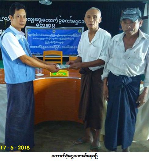 ဘေးအန္တရာယ်ဆိုင်ရာစီမံခန့်ခွဲမှုဦးစီးဌာန၊ ပြည်ခရိုင်ဦးစီးမှူးရုံးမှတာဝန်ရှိသူများသည် ပြည်ခရိုင်၊ ပေါင်းတည်မြို့နယ်၊ ခေမံအုပ်စု၊ လယ်ဦးစုကျေးရွာနှင့် မြိုင်တွင်းကျေးရွာတို့တွင် (၁၅-၅-၂၀၁၈) ရက် နေ့တွင် ဖြစ်ပွားခဲ့သော လေပြင်းတိုက်ခတ်မှုကြောင့် ဘေးသင့်ခဲ့သော အမိုးလန် နေအိမ် (၆) လုံး အတွက် တန်ဖိုးသင့်နှုန်းထားများဖြင့် အိမ်ဆောက်ပစ္စည်းဖိုးငွေ (၂၈၈,၀၀၀ိ/-)ကျပ်တို့အား (၁၇-၅-၂၀၁၈) ရက်နေ့ (၈း၀၀) နာရီအချိန်တွင် ဘေးသင့်ပြည်သူများ လက်ဝယ်အရောက် ထောက်ပံ့ပေး အပ်ခဲ့ ကြောင်း သတင်း ရရှိပါသည်။