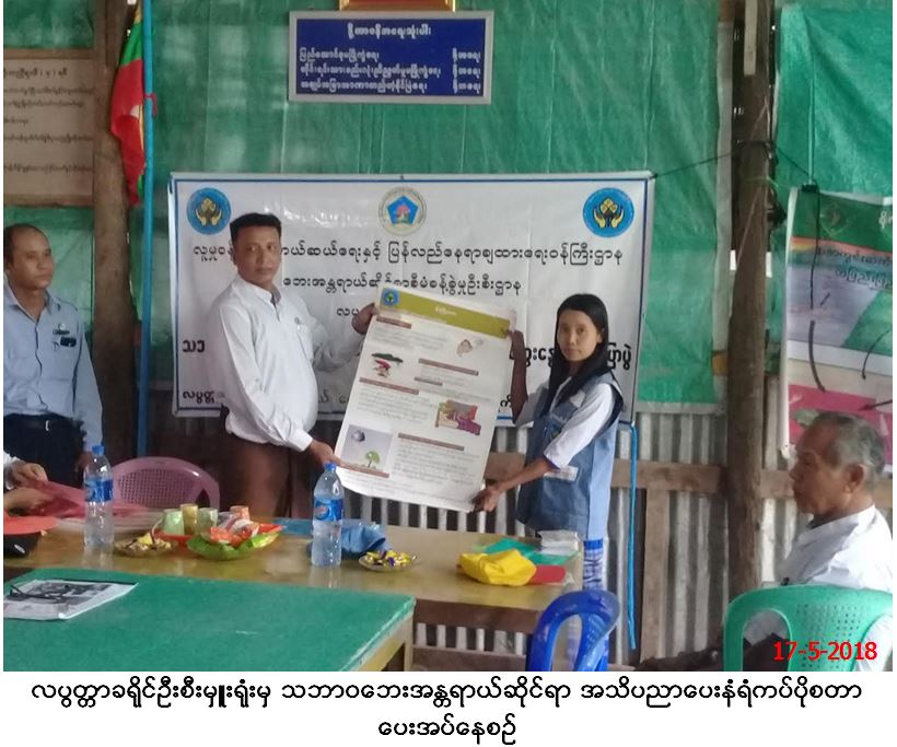 ဘေးအန္တရာယ်ဆိုင်ရာစီမံခန့်ခွဲမှုဦးစီးဌာန၊ လပွတ္တာခရိုင်ဦးစီးမှူးရုံးမှ တာဝန်ရှိသူများသည် (၁၇-၅-၂၀၁၈)ရက်နေ့ (၁၃း၃၀)အချိန် တွင် လပွတ္တာမြို့နယ် စားသုံးသူရေးရာဦးစီးဌာန၊ ခရိုင်စိုက်ပျိုးရေးဦးစီးဌာနတို့နှင့်ပူးပေါင်း၍ လပွတ္တာမြို့နယ်၊ ကျောက်မှော်ကျေးရွာအုပ်စု၊ ကျောက်မှော်ကျေးရွာ၌ ကျေးရွာနေပြည်သူ (၅၂)ဦးအား သဘာဝဘေးအန္တရာယ်ဆိုင်ရာ အသိပညာပေးဟောပြောဆွေးနွေးခဲ့ဲပြီး နံရံ ကပ်ပိုစတာနှင့် လက်ကမ်းစာစောင်ဖြန့်ဝေခြင်းများ ဆောင်ရွက်ခဲ့ကြောင်း သတင်းရရှိပါသည်။