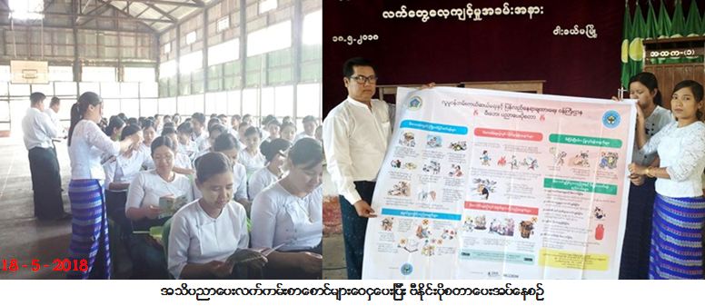 ဘေးအန္တရာယ်ဆိုင်ရာစီမံခန့်ခွဲမှုဦးစီးဌာန၊ မြောင်းမြခရိုင်ဦးစီးမှူးရုံးမှ တာဝန်ရှိသူများသည် (၁၈-၅-၂၀၁၈) ရက်နေ့၊ နံနက် (၀၉း၀၀) မှ (၁၀း၃၀) နာရီအချိန်ထိ မြောင်းမြခရိုင်၊ ဝါးခယ်မမြို့ အမှတ် (၁) အခြေခံ ပညာအထက်တန်းကျောင်း၌ မွမ်းမံသင်တန်းတက်ရောက်နေသည့် ဆရာ/ဆရာမ စုစုပေါင်း (၂၀၀) ဦးတို့ အား ငလျင်ဘေးအန္တရာယ်နှင့် ပတ်သက်၍ အသိပညာပေးဆွေးနွေးခြင်း၊ သဏ္ဍာန်တူသရုပ်ပြ ဇာတ်တိုက် လေ့ကျင့်စေခြင်း၊ လက်ကမ်းစာစောင်များဝေငှပေးခြင်းနှင့် ဗီနိုင်းပိုစတာပေးအပ်ခြင်းများကို ဆောင်ရွက်ခဲ့ ပါကြောင်း သတင်းရရှိပါသည်။