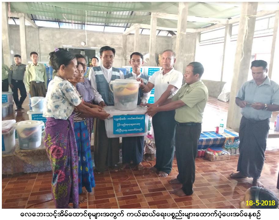 လူမှုဝန်ထမ်း၊ ကယ်ဆယ်ရေးနှင့်ပြန်လည်နေရာချထားရေးဝန်ကြီးဌာန၊ ဘေးအန္တရာယ်ဆိုင်ရာစီမံခန့့်ခွဲမှုဦးစီးဌာန၊ ဧရာဝတီတိုင်းဒေသကြီး ဦးစီးမှူးရုံးမှ တာဝန်ရှိသူများသည် ကျုံပျော်မြို့နယ် တိုင်းဒေသကြီး လွှတ်တော်ကိုယ်စားလှယ် မန်းဂျော်နီ၊ ကျုံပျော်မြို့နယ်အုပ်ချုပ်ရေးမှူး တို့နှင့်အတူ ဧရာဝတီတိုင်းဒေသကြီး၊ ပုသိမ်ခရိုင်၊ ကျုံပျော်မြို့နယ်၊ ဓနော်ကျေးရွာအုပ်စု၊ ဆင်ချောင်းကျေးရွာနှင့် အုန်းပင်စုကျေးရွာတို့၌ (၁၇.၅.၂၀၁၈)ရက်နေ့တွင် ဖြစ်ပွားခဲ့သော လေပြင်းတိုက်ခတ်မှုကြောင့် ပြိုကျနေအိမ်(၂၄)လုံး၊ အမိုးလန်နေအိမ် (၆၀)လုံးမှ လူဦးရေ (၃၉၂)ဦး အတွက် Family kits (၂၆)မျိုးပါ (၂၄)ပုံး (၂၁၁၂၀၀၀ိ/-)ကျပ်၊ ကယ်ဆယ်ရေးပစ္စည်း(၁၀)မျိုး (၆၀)ပုံး (၁၁၁၀၆၀၀ိ/-)ကျပ်၊ ဆန်ရိက္ခာ (၇)ရက်စာ (၈၂၃၂၀၀ိ/-)ကျပ်၊ အိမ်ဆောက်ပစ္စည်းဖိုး (၄၀၂၀၀၀၀ိ/-) ကျပ်၊ စုစုပေါင်းရန်ပုံငွေ (၄၈၄၃၂၀၀ိ/-)ကျပ်တို့အား လေဘေးသင့့်ပြည်သူများ၏ လက်ဝယ်သို့ (၁၈.၅.၂၀၁၈)ရက်နေ့တွင် ကွင်းဆင်းထောက်ပံ့ခဲ့ကြောင်း သတင်းရရှိပါသည်။