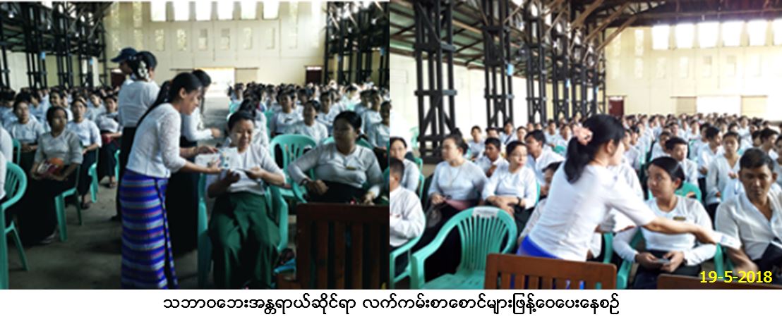 ဘေးအန္တရာယ်ဆိုင်ရာစီမံခန့်ခွဲမှုဦးစီးဌာန၊ မြောင်းမြခရိုင်ဦးစီးမှူးရုံးမှ တာဝန်ရှိသူများသည် (၁၉.၅.၂၀၁၈)ရက်နေ့တွင် (၀၈း၀၀)နာရီမှ (၀၉း၃၀)နာရီထိ မြောင်းမြမြို့ အမှတ်(၁) အခြေခံပညာအထက်တန်းကျောင်း၌ မွမ်းမံသင်တန်းတက်ရောက်လျက်ရှိ သောဆရာ/ဆရာမ များနှင့် ကျောင်းအုပ်ဆရာ/ဆရာမကြီးများ စုစုပေါင်း(၅၄၄)ဦးအား သဘာဝဘေးနှင့်ပတ်သက်သော အသိပညာများဖြန့်ဝေပေးခြင်း၊ ဆောင်ရန်၊ ရှောင်ရန်များအား ဟောပြောဆွေးနွေးခဲ့ပြီး လက်ကမ်းစာစောင်များ၊ ဗီနိုင်းပိုစတာများ ဝေငှပေးခြင်းများ ဆောင်ရွက်ခဲ့ကြောင်း သတင်းရရှိပါသည်။