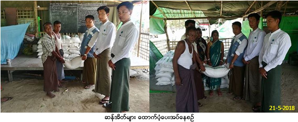 ဘေးအန္တရာယ်ဆိုင်ရာစီမံခန့်ခွဲမှုဦးစီးဌာန၊ မောင်တောခရိုင်ဦးစီးမှူးရုံးမှ တာဝန်ရှိသူများသည် မောင်တောမြို့၊ ဟိန္ဒူကယ်ဆယ်ရေးစခန်းရှိ အိမ်ထောင်စု (၂၉၃) စု မှလူဦးရေ (၁၁၂၅) ဦးအတွက် ဆန်(၂၄၄)အိတ်နှင့် မောင်တောမြို့နယ် (၃)မိုင်သီဟိုခြံအနီး မြိုတိုင်းရင်းသားများ အိမ်ထောင်စု (၈၇)စုမှ လူဦးရေ (၅၈၂)ဦးအတွက် ဆန်(၈၇)အိတ်တို့အား (၂၁-၅-၂၀၁၈)ရက်နေ့တွင် အသီးသီးထောက်ပံ့ပေးအပ်ခဲ့ကြောင်း သတင်းရရှိပါသည်။