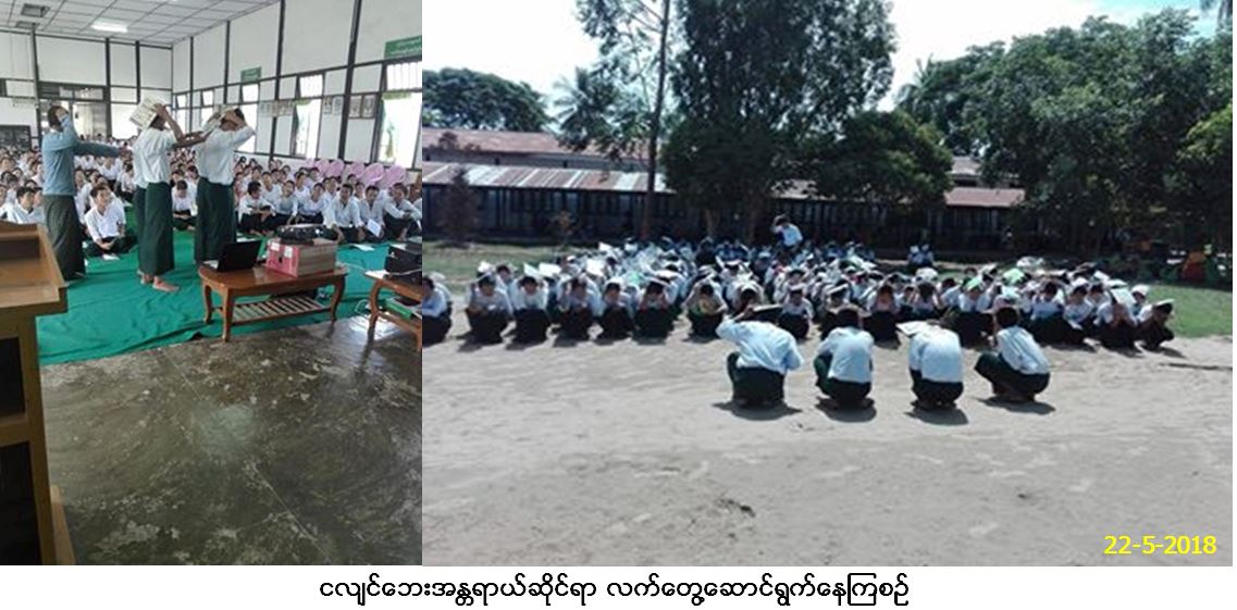 လူမှုဝန်ထမ်း၊ ကယ်ဆယ်ရေးနှင့်ပြန်လည်နေရာချထားရေးဝန်ကြီးဌာန၊ ဘေးအန္တရာယ်ဆိုင်ရာစီမံခန့်ခွဲမှုဦးစီးဌာန၊ ဖျာပုံခရိုင်ဦးစီးမှူးရုံးမှ တာဝန်ရှိသူများသည် (၂၂.၅.၂၀၁၈) ရက်နေ့ နံနက်(၁၀း၀၀)နာရီအချိန်မှ ညနေ(၃း၀၀)နာရီအချိန်ထိ ကျိုက်လတ်မြို့ အမှတ်(၂)ခြေခံပညာ အထက်တန်းကျောင်းတွင် (Grade2) ဒုတိယတန်းသင်ရိုးသစ် ကျောင်းအုပ်စုအလိုက် သင်တန်းတက်ရောက်နေသော ဆရာ/မ အင်အား (၃၅၀)ဦးကို ငလျင်ဘေးအန္တရာယ်နှင့် ပတ်သတ်သော အသိပညာပေးခြင်းပြုလုပ်ခြင်း ဆောင်ရန်ရှောင်ရန်များဆွေးနွေးခဲ့ပြီး တက်ရောက် လာသူဆရာ/မများကို ငလျင်ဘေးအန္တရာယ်ဆိုင်ရာ သရုပ်ပြပြုလုပ်ခြင်းများဆောင်ရွက်ခဲ့ပြီး လက်ကမ်းစာစောင်များ ဝေငှပေးခဲ့ကြောင်း သတင်းရရှိပါသည်။