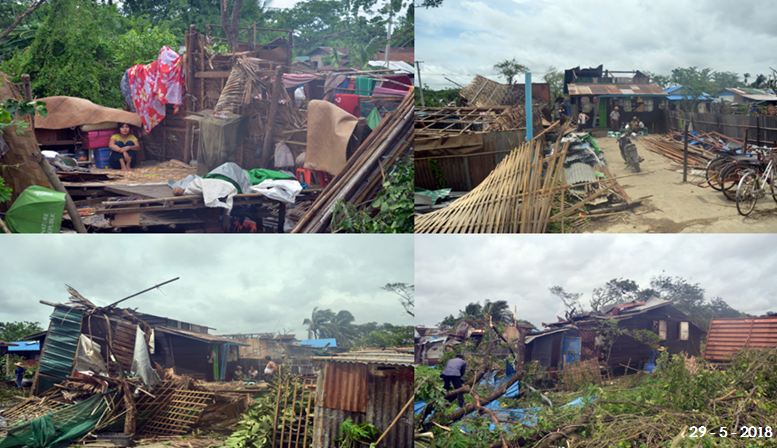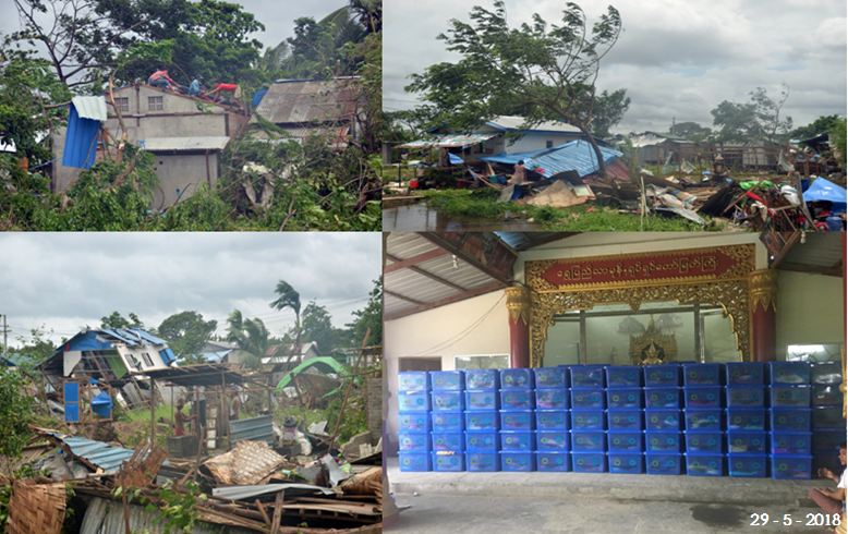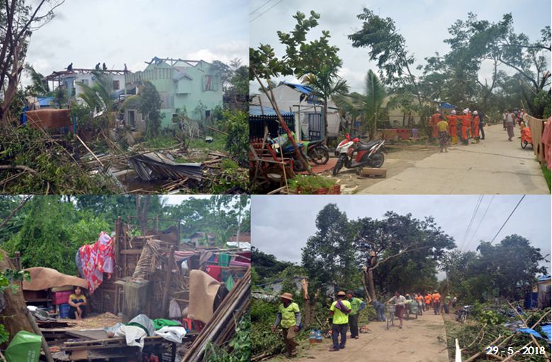 အလားတူ ရခိုင်ပြည်နယ် မာန်အောင်မြို့နယ် မျှော်တော်ဦးကျေးရွာတွင် (၂၉-၅-၂၀၁၈) ရက်နေ့ (ဝရး၄၅) အချိန်ခန့်က လေပြင်းတိုက်ခတ်မှုကြောင့် နေအိမ်ပေါ်သို့ အုန်းပင်လဲကျပိမိသဖြင့် လူ (၁) ဦး သေဆုံးပြီး (၁)ဦးဒဏ်ရာရှိခဲ့ကာသိမ္ဘလကျေးရွာတွင် မန်ကျည်းပင်လဲကျမှုကြောင့် လူ(၁) ဦးဒဏ်ရာ ရရှိခဲ့ ကြောင်းကနဦး သတင်းအရသေဆုံး၊ ဒဏ်ရာရရှိသူများနှင့် ထိခိုက်ပျက်စီးသည့် နေအိမ်များအား ထောက်ပံ့နိုင်ရေးအတွက် ဘေးအန္တရာယ်ဆိုင်ရာစီမံခန့်ခွဲမှုဦးစီးဌာနမှ စီစဉ်ဆောင်ရွက်လျက်ရှိပါသည်။