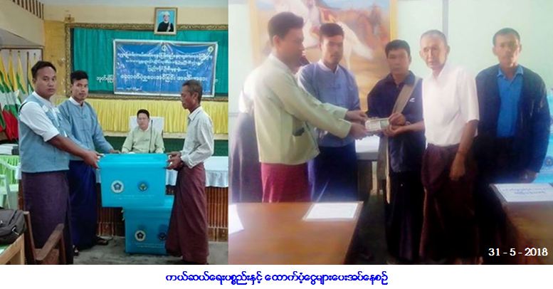 လူမှုဝန်ထမ်း၊ ကယ်ဆယ်ရေးနှင့်ပြန်လည်နေရာချထားရေးဝန်ကြီးဌာန၊ ဘေးအန္တရာယ်ဆိုင်ရာစီမံခန့်ခွဲမှု ဦးစီးဌာန၊ ပြည်ခရိုင်ဦးစီးမှူးရုံးမှ တာဝန်ရှိသူများသည် ပဲခူးတိုင်းဒေသကြီး၊ သာယာဝတီခရိုင်၊ အုတ်ဖို မြို့နယ်၊ ရပ်ကွက် (၃)ရပ်ကွက်၊ အုပ်စု (၁၃)စု၌ (၁၈/၂၅/၂၆-၅-၂၀၁၈) ရက်နေ့တို့တွင် ဖြစ်ပွားခဲ့သော လေဘေးကြောင့် လေဘေးသင့် အမိုးလန်အိမ် (၉၁) လုံးအတွက် အိမ်ဆောက်ပစ္စည်းဖိုးငွေ ကျပ် (၅,၅၄၅,၀၀၀ိ/-)၊ ပြိုလဲနေအိမ် (၃) လုံးအတွက် ကယ်ဆယ်ရေးပစ္စည်း (၉) မျိုး (၃) အိမ်ထောင်စာ၊ အိမ်ဆောက်ပစ္စည်းဖိုးငွေ (၃၀၀,၀၀၀ိ/-)ကျပ်နှင့် လူဦးရေ (၁၂) ဦးအတွက် ဆန်ရိက္ခာဖိုးငွေ (၇) ရက်စာ (၂၅,၂၀၀ိ/-)ကျပ်၊ စုစုပေါင်း ထောက်ပံ့ငွေ (၅,၈၇၀,၂၀၀ိ/-) ကျပ်တို့အား (၃၁-၅-၂၀၁၈) ရက်နေ့ (၁၀း၂၅) နာရီအချိန်တွင် ဘေးသင့်ပြည်သူများလက်ဝယ်အရောက် ထောက်ပံ့ပေးအပ်ခဲ့ကြောင်း သတင်းရ ရှိပါသည်။