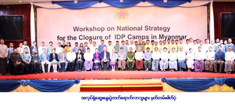 ၂၀၁၈ ခုနှစ်၊ ဇွန်လ (၂) ရက်နေ့၊ နံနက်ပိုင်းတွင် နေပြည်တော် မင်္ဂလာသီရိဟိုတယ်၌ အကြောင်း အမျိုးမျိုးကြောင့်ဖွင့့်လှစ်ထားရသည့် IDP စခန်းများ ပိတ်သိမ်းနိုင်ရန် မဟာဗျူဟာစီမံချက်ရေးဆွဲနိုင်ရေးအတွက် အလုပ်ရုံဆွေးနွေးပွဲကျင်းပပြုလုပ်ခဲ့ပါသည်။