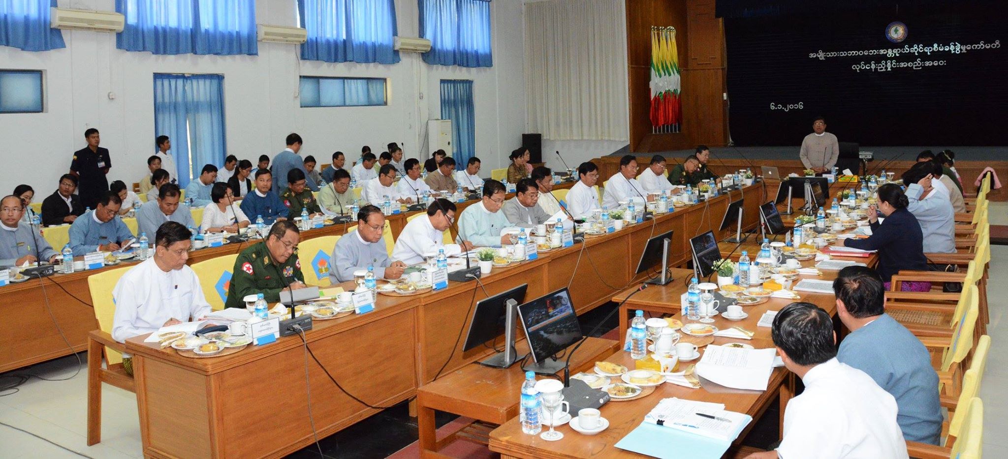 အမျိုးသားသဘာ၀ဘေးအန္တရာယ်ဆိုင်ရာစီမံခန့်ခွဲမှုကော်မတီ လုပ်ငန်းညှိနှိုင်းအစည်းအဝေးကို (၆-၁-၂၀၁၆) ရက်နေ့၊ မွန်းလွဲ (၁) နာရီတွင် နေပြည်တော်ရှိ လူမှုဝန်ထမ်း၊ ကယ်ဆယ်ရေးနှင့် ပြန်လည်နေရာချထားရေးဝန်ကြီးဌာန စုပေါင်း အစည်းအဝေးခန်းမ၌ ကျင်းပရာ အမျိုးသားသဘာ၀ဘေးအန္တရာယ်ဆိုင်ရာစီမံခန့်ခွဲမှု ကော်မတီဥက္ကဋ္ဌ ပြည်ထောင်စုသမ္မတမြန်မာနိုင်ငံတော် ဒုတိယသမ္မတ ဦးဉာဏ်ထွန်း တက်ရောက်အမှာစကားပြောကြားသည်။