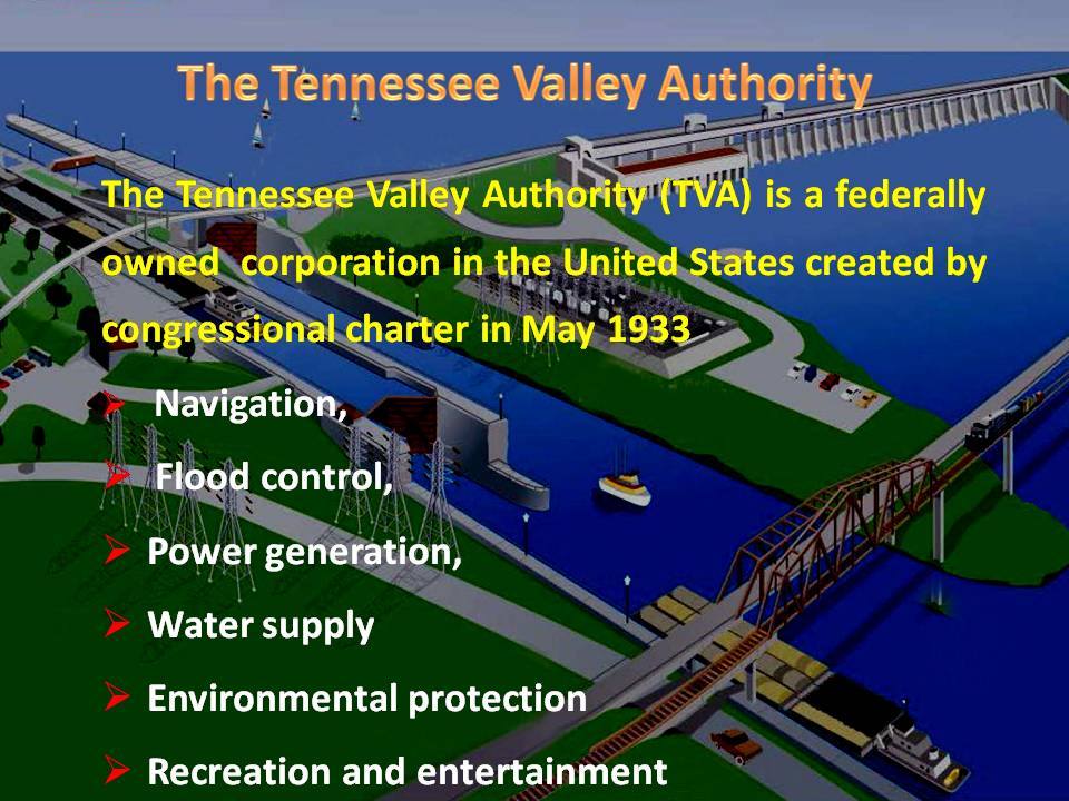 ထိုကဲ့သို့ (TVA) ဖွဲ့စည်းခဲ့သဖြင့် ရေလွှမ်းမိုးမှုများကြောင့် ပျက်စီးဆုံးရှုံးရမည့်ပမာဏ အမေရိကန်ဒေါ်လာ ၅ ဘီလီယံကျော် သက်သာစေခဲ့ပြီး အခြားသောအကျိုးစီးပွားများ ဖြစ်ထွန်းစေခဲ့သဖြင့် တည်ဆောက်ခဲ့သည့် ရင်းနှီးမြှုပ်နှံမှုပမာဏထက် အကျိုး အမြတ်ရရှိမှုမှာ ၆ ဆခန့် ပိုမိုခဲ့ပါကြောင်း၊ ယနေ့ကာလတွင် Tennessee မြစ်ဝှမ်းဒေသသည် အမေရိကန်စီးပွားရေးဖွံ့ဖြိုးမှုအတွက် အားကောင်းသော စေ့ဆော်မှုပြုရာနေရာတစ်နေရာနှင့် ကမ္ဘာပေါ်တွင် ဘက်စုံတိုးတက်သည့် အသုံးဝင်ဆုံးသော ရေနှုတ်ဒေသတစ်ခုအဖြစ် နမူနာယူစရာ ဖြစ်လာခဲ့ပါကြောင်း။