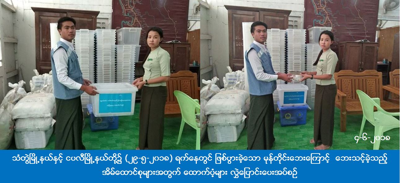 လူမှုဝန်ထမ်း၊ ကယ်ဆယ်ရေးနှင့် ပြန်လည်နေရာချထားရေးဝန်ကြီးဌာန၊ ဘေးအန္တရာယ်ဆိုင်ရာစီမံခန့်ခွဲမှုဦးစီးဌာန၊ ကျောက်ဖြူခရိုင်ဦးစီးမှူးရုံးမှ တာဝန်ရှိသူများသည် သံတွဲမြို့နယ်၌ (၂၉-၅-၂၀၁၈) ရက်နေ့တွင် ဖြစ်ပွားခဲ့သော မုန်တိုင်းဘေးကြောင့် လုံးဝပျက်စီးခဲ့သည့်အိမ် (၁) လုံးအတွက် ကယ်ဆယ်ရေးပစ္စည်း (၁၅) မျိုး (၁) အိမ်ထောင်စာ၊ တစ်စိတ်တစ်ပိုင်းပျက်စီးခဲ့သည့်အိမ် (၈၆) လုံးအတွက် ကယ်ဆယ်ရေးပစ္စည်း (၁၀) မျိုး (၈၆) အိမ်ထောင်စုစာ၊ လုံးဝပျက်စီးခဲ့သည့် အိမ် (၁) လုံးအတွက် အိမ်ဆောက်ပစ္စည်းဖိုးငွေ (၁) သိန်းကျပ်၊ တစ်စိတ်တစ်ပိုင်းပျက်စီးခဲ့သည့်အိမ် (၈၆) လုံးအတွက် အိမ်ဆောက်ပစ္စည်းဖိုးငွေ (၅၅၁၀၀၀၀ိ/-)၊ လူဦးရေ (၃၄၉) ဦးအတွက် ဆန်ရိက္ခာဖိုး (၇)၇က်စာ (၇၂၈၇၀၀ိ/-)၊ စုစုပေါင်းထောက်ပံ့ငွေ (၆၃၃၈၇၀၀ိ/-) နှင့် ငပလီမြို့နယ်၌ (၂၉-၅-၂၀၁၈) ရက်နေ့တွင် ဖြစ်ပွားခဲ့သော မုန်တိုင်းဘေးကြောင့် တစ်စိတ်တစ်ပိုင်းပျက်စီးခဲ့သည့် အိမ် (၈) လုံးအတွက် ကယ်ဆယ်ရေးပစ္စည်း (၁၀) မျိုး (၈) အိမ်ထောင်စုစာနှင့် အိမ်ဆောက်ပစ္စည်းဖိုးငွေ (၆၅၀၀၀၀ိ/-)၊ လူဦးရေ (၂၉) ဦးအတွက် ဆန်ရိက္ခာဖိုး(၇)ရက်စာ (၆၀၉၀၀ိ/-)၊ စုစုပေါင်းထောက်ပံ့ငွေ (၇၁၀၉၀၀ိ/-) အား (၄-၆-၂၀၁၈) ရက်နေ့တွင် သံတွဲခရိုင်အထွေထွေအုပ်ချုပ်ရေးဦးစီးဌာနသို့ လွှဲပြောင်းထောက်ပံ့ပေးအပ်ခဲ့ပါကြောင်း သိရှိရပါသည်။