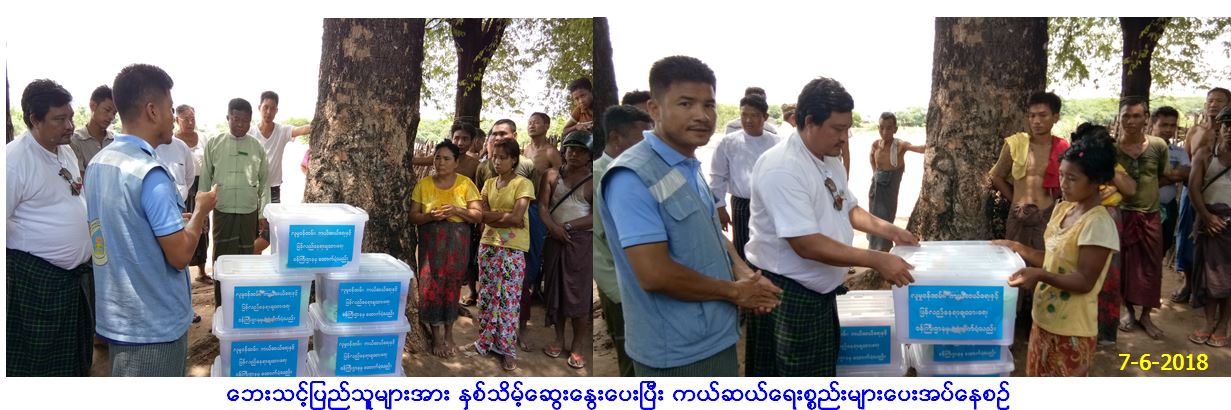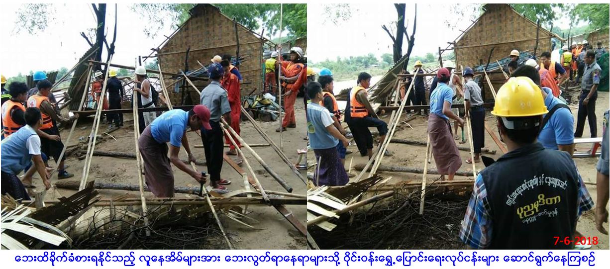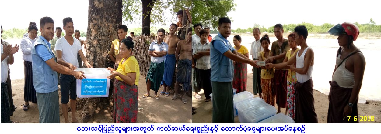 အဆိုပါ လျှပ်တပြတ်ရေဘေးကြောင့် ရေထဲမျှောပါပျက်စီးဆုံးရှုံးခဲ့သည့် လူနေအိမ်(၇)လုံး၊ အိမ်ထောင်စု(၇)စု၊ ဘေးသင့်လူဦးရေ (၃၂)တို့အတွက် အိမ်ဆောက်ပစ္စည်းဖိုး (၈၀၀၀၀၀ိ/-)ကျပ်၊ ဆန်ရိက္ခာဖိုး (၆၇၂၀၀ိ/-) ကျပ်၊ ကယ်ဆယ်ရေးပစ္စည်း(၁၅)မျိုးတို့အား (၇-၆-၂၀၁၈)ရက်နေ့တွင် ဘေးသင့်ပြည်သူများ၏ လက်ဝယ်အရောက် ထောက်ပံ့ပေးအပ်ခဲ့ကြောင်း သတင်းရရှိပါသည်။