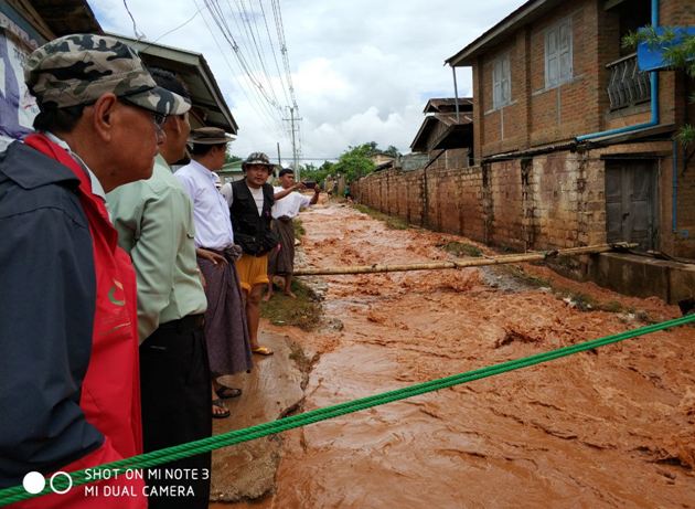 ရှမ်းပြည်နယ်၊ သီပေါမြို့နယ်၊ နမ့်လန်ကျေးရွာအုပ်စုအတွင်း (၆-၆-၂၀၁၈) နေ့တွင် မိုးအဆက်မပြတ် ရွာသွန်းပြီး တောင်ကျချောင်းရေများစီးဆင်းမှုကြောင့် နေအိမ် (၂) လုံးရေစီးဖြင့်မျောပါသွားပါသည်။ အဆိုပါ မျောပါ အိမ်ထောင်စု (၂) စုမှ လူဦးရေ (၉) ဦးတို့အတွက် ဆန်ရိက္ခာဖိုး၊ အိမ်ဆောက်ပစ္စည်းဖိုးနှင့် ကယ်ဆယ်ရေး ပစ္စည်းများ၊ စုစုပေါင်း ငွေသားနှင့် ပစ္စည်းတန်ဖိုး(၂၄၇,၀၅၃ိ/-)(ကျပ်နှစ်သိန်းလေးသောင်းခုနစ်ထောင်ငါးဆယ့်သုံး တိတိ) တို့ကို ဘေးအန္တရာယ်ဆိုင်ရာစီမံခန့်ခွဲမှုဦးစီးဌာန၊ ရှမ်းပြည်နယ်ဦးစီးမှူးရုံးတာဝန်ရှိသူများမှ (၇-၆-၂၀၁၈) နေ့တွင်သွားရောက်ထောက်ပံ့ပေးခဲ့ပါသည်။ (၇-၆-၂၀၁၈)နေ့တွင်လည်း မိုးဆက်လက်ရွာသွန်းမှုကြောင့် ရပ်ကွက် (၅) ခုရှိ နေအိမ် (၁၀၀၀) ကျော်အတွင်းသို့ ရေများဝင်ရောက်ခဲ့ပြီး နေအိမ် (၁) လုံးရေစီးဖြင့် မျောပါသွားကာ အိမ်ထောင်စု (၁၅) စုမှ လူဦးရေ (၄၅) ဦးအား ရေလွတ်ရာနေရာများသို့ ပြောင်းရွှေ့ပေးခဲ့ရပါသည်။ သက်ဆိုင်ရာ တာဝန်ရှိ သူများကထိခိုက်ပျက်စီးမှုနှင့်ဆုံးရှုံးမှုအခြေအနေများကိုကွင်းဆင်းစိစစ်၍ ကူညီထောက်ပံ့မှုလုပ်ငန်းများ ဆက်လက်ဆောင်ရွက်လျက်ရှိကြောင်းနှင့် (၇-၆-၂၀၁၈) ရက်နေ့ညနေပိုင်းတွင် ရေများပြန်လည်ကျဆင်း သွားပြီဖြစ် ကြောင်းသိရှိရပါသည်။