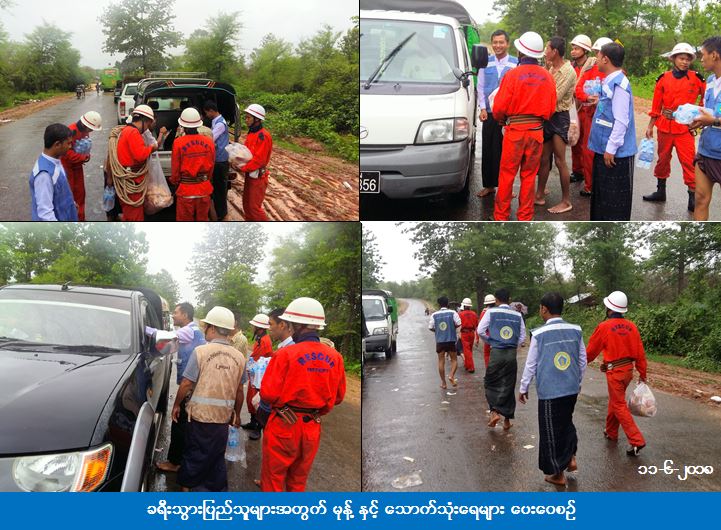လူမှုဝန်ထမ်း၊ ကယ်ဆယ်ရေးနှင့် ပြန်လည်နေရာချထားရေးဝန်ကြီးဌာန၊ ဘေးအန္တရာယ်ဆိုင်ရာစီမံခန့်ခွဲမှုဦးစီးဌာန၊ မကွေးတိုင်းဒေသကြီးဦးစီးမှူးရုုံးမှ တာဝန်ရှိသူများသည် (၁၁-၆-၂၀၁၈) ရက်နေ့တွင် မကွေးမြို့နယ် ဖိုလေးလုံးကျေးရွာအနီးရှိ လိပ်ကန်းချောင်းရေကျဆင်းမှုကြောင့် ခရီးသွားပြည်သူများ လမ်းခရီးတွင် စားရေး/သောက်ရေး အခက်အခဲဖြစ်နေသည့်အတွက် ရေသန့်ဗူးနှင့် မုန့်များကို တိုင်းဒေသကြီးမီးသတ်တပ်ဖွဲ့အင်အား(၅)ဦး၊ မကွေးတိုင်းဒေသကြီး ကြ က်ခြေနီတပ်ဖွဲ့မှ အင်အား(၃)ဦိး၊ ဘေးအန္တရာယ်ဆိုင်ရာစီမံခန့်ခွဲမှုဦးစီးဌာနမှအင်အား(၇)ဦး၊ စုစုပေါင်းအင်အား(၁၅)ဦးဖြင့် (၁၅း၀၀) နာရီအချိန်တွင် သွားရောက်ပေးဝေခဲ့ကြကြောင်း သိရှိရပါသည်။