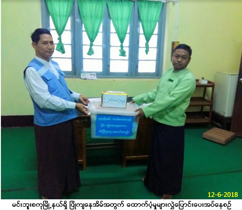 လူမှုဝန်ထမ်း၊ ကယ်ဆယ်ရေးနှင့် ပြန်လည်နေရာချထားရေးဝန်ကြီးဌာန၊ ဘေးအန္တရာယ်ဆိုင်ရာစီမံခန့်ခွဲမှုဦးစီးဌာန၊ မကွေးတိုင်းဒေသကြီးဦးစီး မှူးရုံးမှ တာဝန်ရှိသူများသည် (၁၁.၆.၂၀၁၈)ရက်နေ့တွင် မိုးအဆက်မပြတ်ရွာသွန်း၍ မင်းဘူးစကုမြို့နယ်၊ ရေဘော်ကြီးကျေးရွာနှင့် ဆင်ခေါင်းကျေးရွာတို့၌ သစ်ပင်ပိ၍ပြိုကျလူနေအိမ်(၂)လုံးအတွက် အိမ်ဆောက်ပစ္စည်းဖိုး(၂)သိန်း၊ ကယ်ဆယ်ရေးပစ္စည်း(၁၆)မျိုးပါ အိမ်ထောင်စု(၂)စုစာနှင့် လူ(၈)ဦးတို့တွက် ဆန်ဖိုး (၁၆၈၀၀/-)ကျပ်တို့အား (၁၂.၆.၂၀၁၈)ရက်နေ့ (၀၈း၃၀)နာရီအချိန်တွင် ဘေးသင့်ပြည်သူလက်ဝယ်အရောက်ထောက်ပံ့ခဲ့ကြောင့် သတင်းရရှိပါသည်။