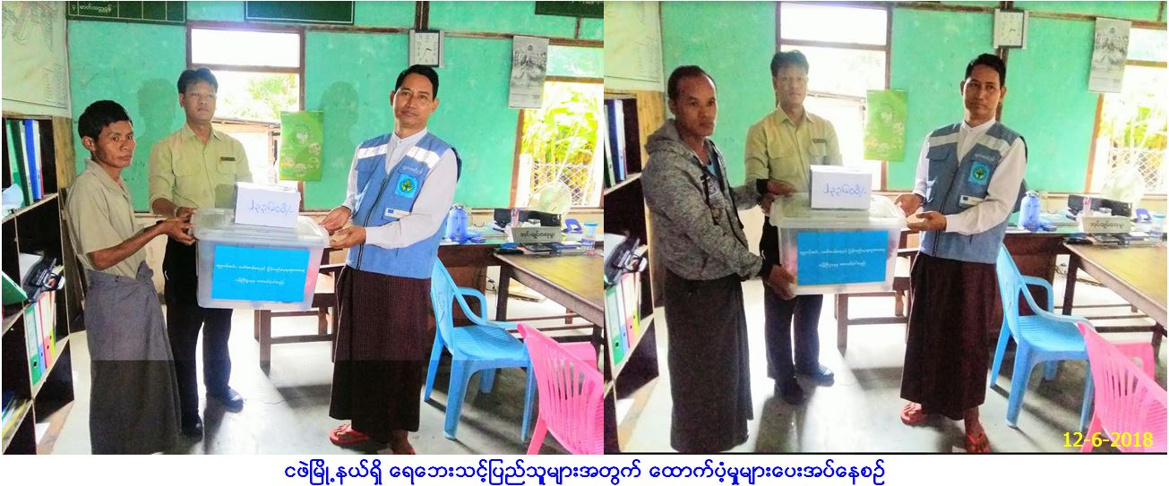 လူမှုဝန်ထမ်း၊ ကယ်ဆယ်ရေးနှင့် ပြန်လည်နေရာချထားရေးဝန်ကြီးဌာန၊ ဘေးအန္တရာယ်ဆိုင်ရာစီမံခန့်ခွဲမှုဦးစီးဌာန၊ မကွေးတိုင်းဒေသကြီးဦးစီး မှူးရုံးမှ တာဝန်ရှိသူများသည် ငဖဲမြို့နယ်၊ စာတတ်ကူကျေးရွာတွင် (၁၁-၆-၂၀၁၈)ရက်နေ့၌ မိုးသည်းထန်စွာရွာသွန်းမှုကြောင့် ရေဘေးသင့်ခဲ့သော ရေမျောအိမ်ခြေ(၂)လုံးအတွက် အိမ်ဆောက်ပစ္စည်းဖိုးငွေ(၂၀၀၀၀၀ိ/-)ကျပ်၊ အိမ်ထောင်စု (၂)စုစာအတွက် ကယ်ဆယ်ရေးပစ္စည်း (၁၆)မျိုးနှင့် လူဦးရေ(၁၆)ဦးအတွက် ဆန်ရိက္ခာ(၇)ရက်စာအတွက် (၂၃၃၆၀၀ိ/-) ကျပ်တို့အား (၁၂-၆-၂၀၁၈) ရက်နေ့(၁၅း၀၀)အချိန်တွင် ဘေးသင့်ပြည်သူများ လက်ဝယ်အရောက်သွားရောက်ထောက်ပံ့ပေးအပ်ခဲ့ကြောင်း သတင်းရရှိပါသည်။