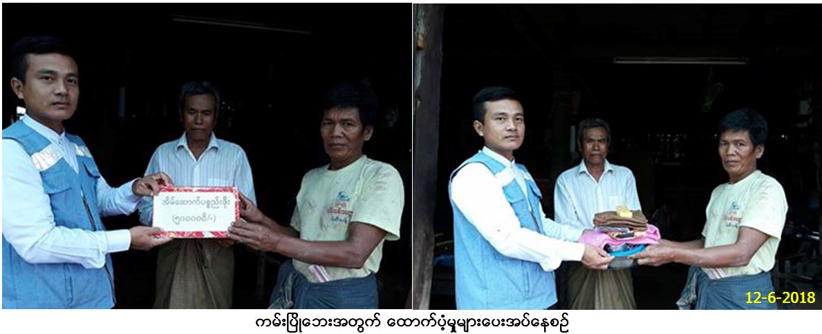 လူမှုဝန်ထမ်း၊ ကယ်ဆယ်ရေးနှင့် ပြန်လည်နေရာချထားရေးဝန်ကြီးဌာန၊ ဘေးအန္တရာယ်ဆိုင်ရာစီမံခန့်ခွဲမှုဦးစီးဌာန၊ မကွေးတိုင်းဒေသကြီး၊ ပခုက္ကူခရိုင်၊ ရေစကြိုမြို့နယ်ဦးစီးမှူးရုံးမှ တာဝန်ရှိသူများသည် ရေစကြိုမြို့ နယ်၊ ဗလဘကျေးရွာ အုပ်စု၊ ဗလဘကျေးရွာ၌ (၁၂.၆.၂၀၁၈) ရက်နေ့၊ (၀၉း၀၀)အချိန်၌ မြစ်ရေတိုက်စားကမ်းပါးပြိုကျမှုကြောင့် လူနေအိမ်များ ကြိုတင်ဖျက်သိမ်းပြောင်းရွှေ့မှုများဆောင်ရွက်ခဲ့ကြရာ ကြိုတင်ဖျက်သိမ်းပြောင်းရွှေ့ရသော လူနေအိမ်(၅)လုံး၊ အိမ်ထောင်စု(၅)စု၊ လူဦးရေ (၂၇)ဦးတို့အတွက် ကယ်ဆယ်ရေးပစ္စည်း(၉)မျိုး၊ ဆန်ရိက္ခာ(၇)ရက်စာ(၅၆၇၀၀ိ/-)ကျပ်၊ အိမ်ဆောက်ပစ္စည်းဖိုးငွေ(၅၀၀၀၀၀ိ/-)ကျပ်၊ စုစုပေါင်း (၅၅၆၇၀၀ိ/-)ကျပ်တို့အား (၁၂.၆.၂၀၁၈)ရက်နေ့တွင် ဗလဘကျေးရွာအုပ်ချုပ်ရေးမှူးနှင့်အတူ ကမ်းပြိုဘေးသင့်ပြည်သူများ လက်ဝယ်အရောက် ထောက်ပံ့ပေးအပ်ခဲ့ကြောင်း သတင်းရရှိပါ သည်။
