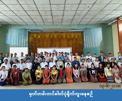 (၁၃-၆-၂၀၁၈) ရက်နေ့တွင် (၉:၃၀)နာရီအချိန်တွင် မွန်ပြည်နယ်ဦးစီးမှူးရုံးမှ တာဝန်ရှိသူများသည် ချောင်းဆုံမြို့၊ ကျွန်းသာယာ ခန်းမ၌ သဘာဝဘေးလျော့ပါးရေးစေတနာ့ဝန်ထမ်းလူငယ် (ဆင့်ပွား) သင်တန်းအမှတ်စဉ်( ၁/၂၀၁၈) ဖွင့်ပွဲအခမ်းအနားတွင် ချောင်းဆုံမြို့နယ်အထွေထွေအုပ်ချုပ်ရေးမှူးမှ အဖွင့်အမှာစကားပြောကြားခဲ့ပြီး မွန်ပြည်နယ်ဦးစီးမှူး ကိုယ်စား၊ ဦးစီးအရာရှိ ဒေါ်ဖြူဖြူအေးမှ သင်တန်းဖွင့်လှစ်ရခြင်းရည်ရွယ်ချက်အား ရှင်းလင်းပြောကြားခဲ့ပါသည်။ အဆိုပါအခမ်းအနားသို့ ချောင်းဆုံမြို့ သဘာဝဘေးစီမံခန့်ခွဲကော်မတီအဖွဲ့ဝင်များ၊ ကျေးရွာအုပ်ချုပ်ရေးမှူးနှင့် သင်တန်းသား/သင်တန်းသူများ၊ စုစုပေါင်း အင်အား (၇၀) ဦး တက်ရောက်ခဲ့ကြောင်း သိရှိရပါသည်။
