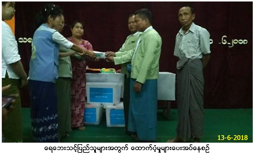 လူမှုဝန်ထမ်း၊ ကယ်ဆယ်ရေးနှင့် ပြန်လည်နေရာချထားရေးဝန်ကြီးဌာန၊ ဘေးအန္တရာယ်ဆိုင်ရာစီမံခန့်ခွဲမှုဦးစီးဌာန၊ သရက်ခရိုင်ဦးစီးမှူးရုံးမှ တာဝန်ရှိသူများသည် (၁၁.၆.၂၀၁၈)ရက်နေ့တွင် မိုးအဆက်မပြတ်ရွာသွန်းမှုကြောင့် သရက်မြို့နယ်၊ ဘန်းကုန်းကျေးရွာအုပ်စု၊ ဒေါင်းပျံ ကျေးရွာ၌ ရေဝင်ရောက်မှုကြောင့် အိမ်ခြေ(၄၇)လုံး၊ အိမ်ထောင်စု(၄၇)စုလူဦးရေ(၁၉၅)ဦးအတွက် ဆန်ရိက္ခာဖိုး (၃)ရက်စာ (၁၇၅၅၀၀ိ/-) ကျပ်တို့အား (၁၃.၆.၂၀၁၈) ရက်နေ့တွင် သရက်မြို့နယ်၊ အထွေထွေအုပ်ချုပ်ရေးဦးစီးဌာနမှ တာဝန်ရှိသူများရှေ့မှောက်တွင် သက်ဆိုင်ရာကျေးရွာအုပ်ချုပ်ရေးမှူးများလက်ဝယ်သို့ ထောက်ပံ့ပေးအပ်ခဲ့ကြောင်း သတင်းရရှိပါသည်။