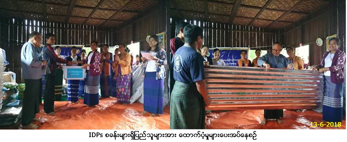 လူမှုဝန်ထမ်း၊ ကယ်ဆယ်ရေးနှင့် ပြန်လည်နေရာချထားရေးဝန်ကြီးဌာန၊ ဘေးအန္တရာယ်ဆိုင်ရာစီမံခန့်ခွဲမှုဦးစီးဌာန၊ ကချင်ပြည်နယ်ဦးစီးမှူးရုံးမှ တာဝန်ရှိသူများသည် မြစ်ကြီးနားမြို့နယ်နှင့် မိုးကောင်းမြို့နယ်ရှိ IDPs စခန်းများတွင်နေထိုင်သည့် အိမ်ထောင်စု(၂၀)သည် ၎င်းတို့၏ ဆန္ဒ အလျောက်မိုးကောင်းမြို့နယ်၊ လွယ်လီယန်ကျေးရွာအုပ်စု နောင်းပုံကျေးရွာတွင် အလှူရှင်များမှ ဝယ်ယူဆောက်လုပ်ပေးသည့် တန်ဖိုးနည်း အိမ်ရာများသို့ပြောင်းရွှေ့လာသောပြည်သူများအား ကယ်ဆယ်ရေးပစ္စည်း(၁၇)မျိုးပါ ပုံး(၂၀)၊ ဆန်ရိက္ခာ(၇)ရက်စာ (၂၁၈,၄၀၀/-)ကျပ်နှင့် (၃၂)မျိုးပါ Relief kit (၂၀)တို့အား (၁၃-၆-၂၀၁၈)ရက်နေ့ နံနက် (၁၀း၃၀)အချိန်၌ထောက်ပံ့ခဲ့ပြီး ကချင်ပြည်နယ်ဝန်ကြီးချုပ်ဇနီးနှင့် အစိုးရ အဖွဲ့ဝင်ဝန်ကြီးများနှင့်အတူပြည်သူများအား ကျန်းမာရေး၊ လူမှုရေး၊ ပညာရေး အခက်အခဲများကို ဆွေးနွေးဖြေရှင်းကူညီဆောင်ရွက်ခဲ့ကြောင်း သတင်းရရှိပါသည်။