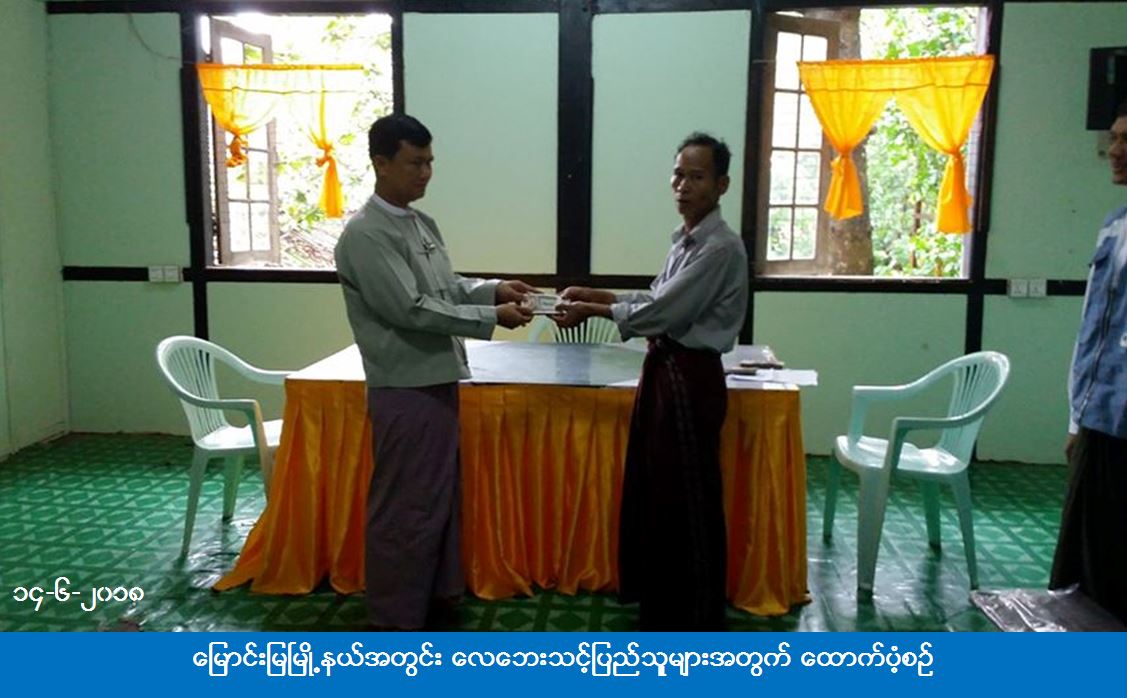 လူမှုဝန်ထမ်း၊ ကယ်ဆယ်ရေးနှင့် ပြန်လည်နေရာချထားရေးဝန်ကြီးဌာန၊ ဘေးအန္တရာယ်ဆိုင်ရာစီမံခန့်ခွဲမှုဦးစီးဌာန၊ မြောင်းမြခရိုင်ဦးစီးမှူးရုံးမှ တာဝန်ရှိသူများသည် မြောင်းမြမြို့နယ်၊ ထန်းကုန်ကျေးရွာအုပ်စု၊ မြောင်းမြမြို့ (၁၀) ရပ်ကွက်၊ ကံသာကုန်းကျေးရွာအုပ်စု(၂)စုနှင့် ရပ်ကွက်(၁)၊ အေရွားကျေးရွာ ကံသာကုန်းကျေးရွာနှင့် (၁၀) ရပ်ကွက်တို့၌ (၁၂-၆-၂၀၁၈) ရက်နေ့နှင့် (၁၃-၆-၂၀၁၈) ရက်နေ့တို့တွင် ဖြစ်ပွားခဲ့သော လေဘေးကြောင့် ပြိုကျခဲ့သည့် နေအိမ် (၂) လုံးနှင့် အမိုးလန်ခဲ့သည့် နေအိမ် (၁) လုံး စုစုပေါင်းနေအိမ် (၃) လုံးမှ ဘေးသင့်လူဦးရေ (၁၄) ဦးအတွက် ဆန်ရိက္ခာ (၇) ရက်စာ (၂၉၄၀၀ိ/-)၊ အိမ်ခြေ (၃) လုံးအတွက် အိမ်ဆောက်ပစ္စည်းဘိုးထောက်ပံ့ငွေ (၂၅၀၀၀၀ိ/-)၊ စုစုပေါင်းထောက်ပံ့ငွေ (၂၇၉၄၀၀ိ/-) နှင့် ပြိုကျနေအိမ် (၂) လုံး အိမ်ထောင်စု(၂)စုအတွက် ကယ်ဆယ်ရေးပစ္စည်း (၁၆) မျိုးနှင့် အမိုးလန်အိမ်ခြေ (၁) လုံး အိမ်ထောင်စု(၁)စုစာအတွက် ကယ်ဆယ်ရေးပစ္စည်း (၁၁) မျိုးအား မြောင်းမြမြို့နယ် အထွေထွေအုပ်ချုပ်ရေးဦးစီးဌာနခန်းမ၌ (၁၄-၆-၂၀၁၈) ရက်နေ့၊ (၁၅း၀၀) နာရီအချိန်တွင် မြောင်းမြမြို့နယ်အုပ်ချုပ်ရေးမှူးနှင့်အတူ ထောက်ပံ့ပေးအပ်ခဲ့ကြောင်း သိရှိရပါသည်။