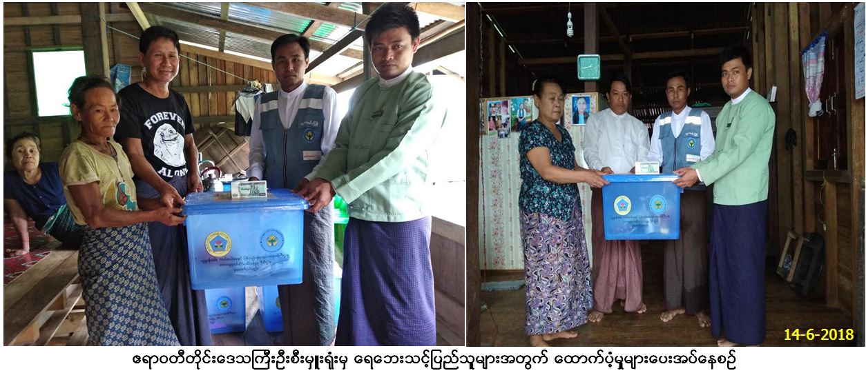 လူမှုဝန်ထမ်း၊ ကယ်ဆယ်ရေးနှင့် ပြန်လည်နေရာချထားရေးဝန်ကြီးဌာန၊ ဘေးအန္တရာယ်ဆိုင်ရာစီမံခန့်ခွဲမှုဦးစီးဌာန၊ ဧရာဝတီတိုင်းဒေသကြီး ဦးစီးမှူးရုံးမှ တာဝန်ရှိသူများသည် ဧရာဝတီတိုင်းဒေသကြီး၊ ပုသိမ်ခရိုင်၊ ငွေဆောင်မြို့နယ်၊ ငကွကျေးရွာနှင့် ကြက်တူရွေးကျေးရွာတို့တွင် (၁၂- ၆-၂၀၁၈)ရက်နေ့၌ ဖြစ်ပွားခဲ့သောလေဘေးကြောင့် တစ်စိတ်တစ်ပိုင်းပျက်စီးနေအိမ် (၅)လုံး၊ အိမ်ထောင်စု (၅)စုမှ လူဦးရေ (၁၈)ဦးအတွက် ကယ်ဆယ်ရေးပစ္စည်း (၁၀)မျိုးပါ (၅)ပုံး (၉၂၅၅၀ိ/-)၊ ဆန်ရိက္ခာ(၇)ရက်စာ ရန်ပုံငွေ (၃၇၈၀၀ိ/-) ၊ အိမ်ဆောက်ပစ္စည်းဖိုး (၁၅၀၀၀၀ိ/-) ၊ စုစုပေါင်းရန်ပုံငွေ (၁၈၇၈၀၀ိ/-) တို့အား (၁၄-၆-၂၀၁၈)ရက်နေ့ (၁၅း၂၀)နာရီအချိန်တွင် လေဘေးသင့်ပြည်သူများ လက်ဝယ်အရောက် ထောက်ပံ့ပေးအပ်ခဲ့ကြောင်း သတင်းရရှိပါသည်။