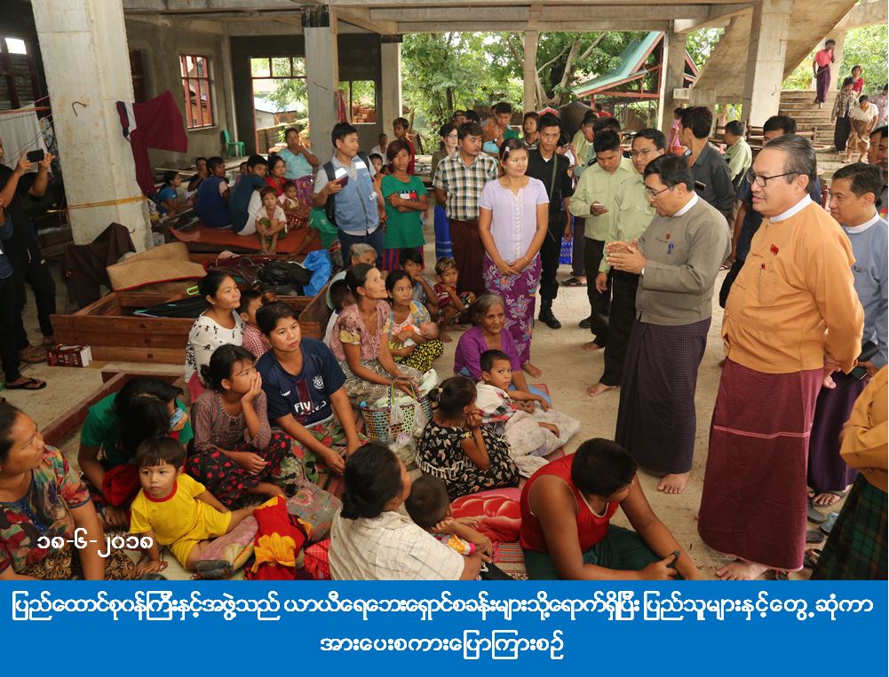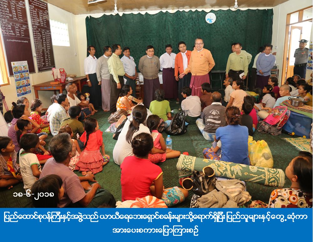 ဆက်လက်၍ ပြည်ထောင်စုဝန်ကြီးနှင့်အဖွဲ့သည် ယာယီရေဘေးရှောင်စခန်းများဖြစ်သော အမှတ်(၁၁) အခြေခံပညာအထက်တန်းကျောင်း၊ ဓမ္မပီယဘုန်းတော်ကြီးကျောင်း၊ ရွှေစေတီဘုန်းတော်ကြီးကျောင်း၊ အ.မ.က (လှိုင်)နှင့် သဒ္ဓမ္မစေတနာ ဘုန်းတော်ကြီးကျောင်းများသို့ရောက်ရှိပြီး ပြည်သူများနှင့်တွေ့ဆုံကာ အားပေးစကားပြောကြားခြင်း၊ တစ်ပတ်စာဆန်ရိက္ခာဖိုးငွေထောက်ပံ့ခြင်း၊ ကာဘော်လစ်ဆပ်ပြာတုံးများ ထောက်ပံ့ခြင်း၊ သက်ကြီးရွယ်အိုဘိုးဘွားများအား ငွေကြေးထောက်ပံခြင်းများကိုလည်း ဆောင်ရွက်ခဲ့ပါသည်။