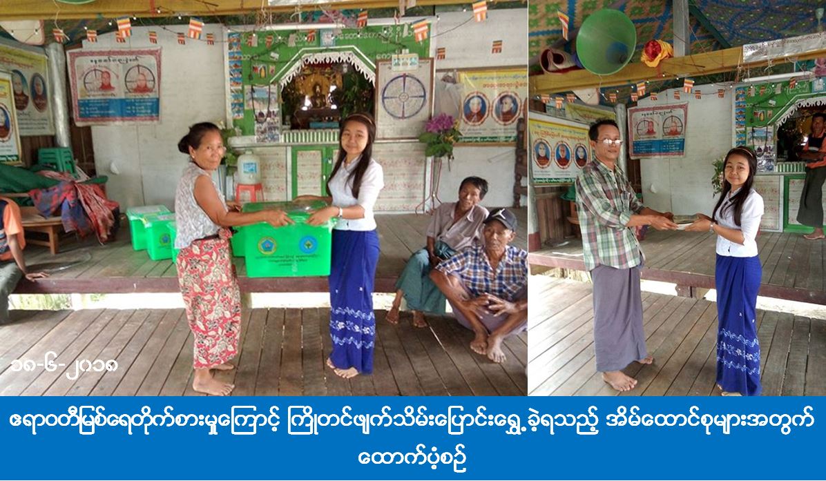 လူမှုဝန်ထမ်း၊ ကယ်ဆယ်ရေးနှင့် ပြန်လည်နေရာချထားရေးဝန်ကြီးဌာန၊ ဘေးအန္တရာယ်ဆိုင်ရာစီမံခန့်ခွဲမှုဦးစီးဌာန၊ ကသာခရိုင်ဦးစီးမှူးရုံးမှ တာဝန်ရှိသူများသည် ကသာမြို့နယ် ပုလွေရွှေကျေးရွာအုပ်စု ရေလည်ကျွန်းကျေးရွာ၌ (၁၅-၆-၂၀၁၈) ရက်နေ့တွင် ဧရာဝတီမြစ်ရေတိုက်စားမှုကြောင့် ကြိုတင်ဖျက်သိမ်းပြောင်းရွှေ့ခဲ့သည့် အိမ်ထောင်စု (၆) စုအတွက် ကယ်ဆယ်ရေးပစ္စည်း(၁၁)မျိုး (၆)အိမ်ထောင်စာ ဆန်ရိက္ခာဖိုး (၉၂၄၀၀ိ/-)၊ အိမ်ဆောက်ပစ္စည်းဖိုး (၆၀၀၀၀၀ိ/-) တို့ကို (၁၈-၆-၂၀၁၈) ရက်နေ့တွင် ဘေးသင့်ပြည်သူများလက်ဝယ်သို့ထောက်ပံ့ပေးခဲ့ကြောင်း သိရှိရပါသည်။