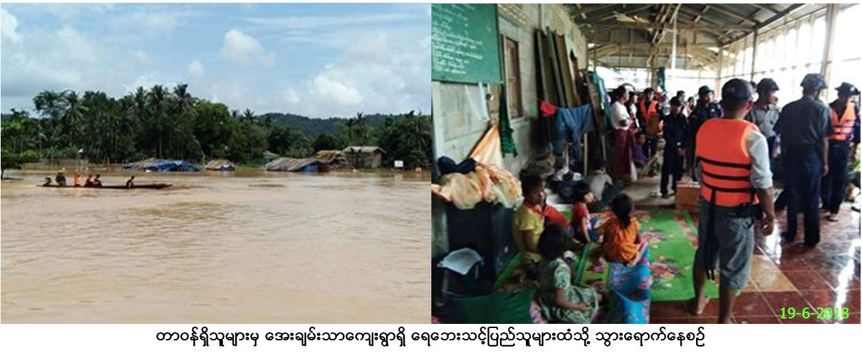 လူမှုဝန်ထမ်း၊ ကယ်ဆယ်ရေးနှင့် ပြန်လည်နေရာချထားရေးဝန်ကြီးဌာန၊ ဘေးအန္တရာယ်ဆိုင်ရာစီမံခန့်ခွဲမှုဦးစီးဌာန၊ ကော့သောင်းခရိုင်ဦးစီးမှူး ရုံးမှ တာဝန်ရှိသူများသည် (၁၈.၆.၂၀၁၈)ရက်နေ့တွင် ပါချန်မြစ်ရေ မြင့်တက်ပြီး ရေကြီးခြင်းကြောင့် အေးချမ်းသာကျေးရွာမှ အိမ်ခြေ (၁၇)လုံး အိမ်ထောင်စု(၁၇)စုမှ လူဦးရေ (၈၀)ဦး ရေဘေးဒုက္ဓခံစားခဲဲ့ရပြီး ကယ်ဆယ်ရေးစခန်းဖွင့်လှစ်ထားသည့် အေးချမ်းသာရွာဦးဘုန်းတော်ကြီး ကျောင်းနှင့် ဓမ္မာရုံသို့ တနင်္သာရီတိုင်းဒေသကြီး၊ ကော့သောင်းခရိုင်၊ အထွေထွေအုပ်ချုပ်ရေးဦးစီးဌာန၊ မီးသတ်ဦးစီးဌာန၊ လူမှုရေးအသင်း အဖွဲ့များနှင့်အတူသွားရောက်၍ ကယ်ဆယ်ရေးပစ္စည်း(၁၀)မျိုး (၁၇)အိမ်ထောင်စာ၊ ဆန်ဖိုး(၁၆၈,၀၀၀/-)ကျပ်တို့အား (၁၉.၆.၂၀၁၈)ရက်နေ့ တွင် သွားရောက်ထောက်ပံ့ပေးအပ်ခဲ့ကြောင်း သတင်းရရှိပါသည်။