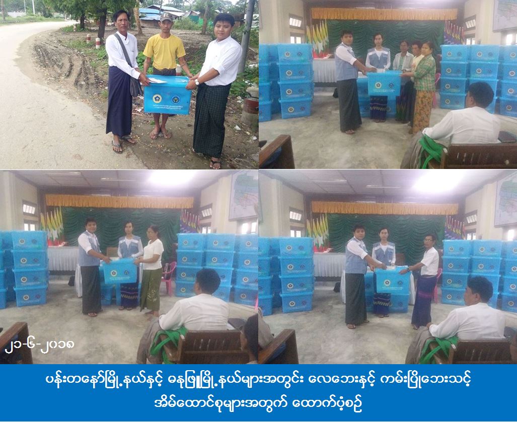 လူမှုဝန်ထမ်း၊ ကယ်ဆယ်ရေးနှင့် ပြန်လည်နေရာချထားရေးဝန်ကြီးဌာန၊ ဘေးအန္တရာယ်ဆိုင်ရာ စီမံခန့်ခွဲမှုဦးစီးဌာန၊ မအူပင်ခရိုင်ဦးစီးမှူးရုံးမှ တာဝန်ရှိသူများသည် ညောင်းတုန်းမြို့နယ် (သပြုရေလယ်/ ဆားမလောက်/ ချောင်းကြီး/ စက္ကော့ရေလယ်/ ဆင်ထုံး/ မြမ္မာပြသာ/ တဇင်ရေကျော်) ကျေးရွာအုပ်စုတို့၌ (၂၅-၅-၂၀၁၈၊ ၉/၁၀/၁၁/၁၂-၆-၂၀၁၈) ရက်နေ့တို့တွင် လေပြင်းတိုက်ခိုက်မှုကြောင့် ပြိုကျခဲ့သည့်နေအိမ် (၈) လုံးအတွက် ကယ်ဆယ်ရေးပစ္စည်း (၁၆) မျိုး (၈) အိမ်ထောင်စာ၊ တစ်စိတ်တစ်ပိုင်းပျက်စီးခဲ့သည့် နေအိမ် (၆) လုံးအတွက် ကယ်ဆယ်ရေးပစ္စည်း (၁၁) မျိုး (၁၁) အိမ်ထောင်စာ၊ ကမ်းပြိုဘေးကြောင့် ကြိုတင်ရွှေ့ပြောင်းခဲ့သည့် နေအိမ် (၁၁) လုံးအတွက် ကယ်ဆယ်ရေးပစ္စည်း (၁၀) မျိုး (၁၁) အိမ်ထောင်စာနှင့် (၂၅-၅-၂၀၁၈) ရက်နေ့တွင် ဖြစ်ပွားခဲ့သည့် လေဘေးအတွက် ကယ်ဆယ်ရေးရန်ပုံငွေ ထောက်ပံ့ရန်ကျန်ရှိသည့် ပြိုကျနေအိမ် (၄) လုံး၊ တစ်စိတ်တစ်ပိုင်းပျက်စီးနေအိမ် (၁) လုံး အပါအဝင် စုစုပေါင်းနေအိမ် (၃၀) လုံးအတွက် စုစုပေါင်း အိမ်ဆောက်ပစ္စည်းဖိုးရန်ပုံငွေ (၂,၅၇၀,၀၀၀ိ/-)၊ စုစုပေါင်းလူဦးရေ (၁၃၄) ဦးအတွက် ဆန်ရိက္ခာဖိုးငွေ (၂၈၁၄၀၀ိ/-)၊ စုစုပေါင်းကယ်ဆယ်ရေးရန်ပုံငွေ (၂,၈၅၁,၄၀၀ိ/-) အား ညောင်တုန်းမြို့နယ်တိုင်းဒေသကြီး လွှတ်တော်ကိုယ်စားလှယ် ဒေါ်နီနီမိုး၊ ဦးကျော်ဆန်းတို့နှင့်အတူ (၂၁-၆-၂၀၁၈) ရက်နေ့၊ (၁၀း၀၀) နာရီအချိန်တွင်လည်းကောင်း၊