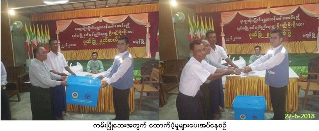 လူမှုဝန်ထမ်း၊ ကယ်ဆယ်ရေးနှင့် ပြန်လည်နေရာချထားရေးဝန်ကြီးဌာန၊ ဘေးအန္တရာယ်ဆိုင်ရာစီမံခန့်ခွဲမှုဦးစီးဌာန၊ ဟင်္သာတခရိုင်ဦးစီးမှူးရုံးမှ တာဝန်ရှိသူများသည် ဇလွန်မြို့နယ်၊ အထွဋ်ကျေးရွာအုပ်စု၊ ဖားလက်ခိုကျေးရွာအုပ်စုနှင့်ညောင်ပင်စုကျေးရွာအုပ်စုတို့တွင် (၁၃.၆.၂၀၁၈)နေ့မှ (၁၄.၆.၂၀၁၈)နေ့ထိ ကမ်းပြိုမှုကြောင့် ကြိုတင်ရွှေ့ပြောင်း အိမ်ခြေ/ အိမ်ထောင်စု(၃၉)စု၊ လူဦးရေ(၁၃၆)ဦး၊ မြို့နယ်သဘာဝဘေးကာကွယ်ရေးအစီအစဉ်ဖြင့် ကမ်းနားရပ်ကွက်ရှိတာအနီးမှ ရွှေ့ပြောင်းအိမ်ခြေ/အိမ်ထောင်စု(၂၃)စု၊ လူဦးရေ(၁၀၂)ဦး၊ စုစုပေါင်းအိမ်ခြေ/အိမ်ထောင်စု (၆၂)စု၊ လူဦးရေ (၂၃၈) ဦးတို့အတွက် ကယ်ဆယ်ရေးပစ္စည်း (၁၀)မျိုး၊ (၆၂) အိမ်ထောင်စာကို လည်းကောင်း၊ အိမ်ဆောက်ပစ္စည်းဖိုး (၆၂) သိန်း၊ ဆန်ရိက္ခာဖိုး (၄၉၉,၈၀၀/-)ကျပ်၊ စုစုပေါင်းကယ်ဆယ်ရေးရန်ပုံငွေ (၆,၆၉၉,၈၀၀/-) ကျပ်ကိုလည်းကောင်း ဇလွန်မြို့နယ်၊ ညောင်ပင်ဈေးကျေးရွာအုပ်စု၊ မရိုးခအုပ်စု၊ အိုးဘိုအုပ်စုတို့တွင် (၁၃.၆.၂၀၁၈)နေ့ လေပြင်းတိုက်ခတ်မှုကြောင့် ပြိုကျ အိမ်ခြေ (၁)လုံး၊ တစ်စိတ်တစ်ပိုင်း ပျက်စီးအိမ်ခြေ(၂)လုံး၊ စုစုပေါင်းအိမ်ခြေ/အိမ်ထောင်စု (၃)စု၊ လူဦးရေ (၁၃) ဦးတို့အတွက်-ကယ်ဆယ်ရေးပစ္စည်း (၁၀) မျိုး၊ (၂) အိမ်ထောင်စာကို လည်းကောင်း၊ကယ်ဆယ်ရေးပစ္စည်း (၁၅) မျိုး၊ (၁) အိမ်ထောင်စာကို လည်းကောင်း၊အိမ်ဆောက်ပစ္စည်းဖိုး (၁၈၀,၀၀၀/-)ကျပ်၊ဆန်ရိက္ခာဖိုး (၂၇,၃၀၀/-) ကျပ်၊ စုစုပေါင်းကယ်ဆယ်ရေးရန်ပုံငွေ (၂၀၇,၃၀၀/-) ကျပ်ကို လည်းကောင်း (၂၂-၆-၂၀၁၈)ရက်နေ့တွင် ဇလွန်မြို့ နယ်၊ အထွေထွေအုပ်ချုပ်ရေးဦးစီးဌာန၊ အစည်းအဝေးခန်းမ၌ မြို့နယ်အထွေထွေအုပ်ချုပ်ရေးဦးစီးဌာနမှ တာဝန်ရှိသူများနှင့်အတူ ဘေးသင့် ပြည်သူများ၏ လက်ဝယ်သို့ ထောက်ပံ့ပေးအပ်ခဲ့ကြောင်း သတင်းရရှိပါသည်။