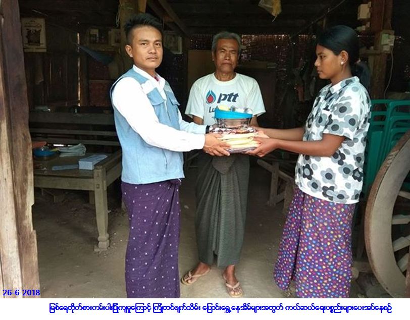 လူမှုဝန်ထမ်း၊ ကယ်ဆယ်ရေးနှင့် ပြန်လည်နေရာချထားရေးဝန်ကြီးဌာန၊ ဘေးအန္တရာယ်ဆိုင်ရာစီမံခန့်ခွဲမှုဦးစီး ဌာန၊ ရေစကြိုမြို့နယ်ဦးစီးမှူးရုံးမှ တာဝန်ရှိသူများသည် ရေစကြိုမြို့နယ်၊ ဗလဘကျေးရွာအုပ်စု၊ ဗလဘကျေးရွာနှင့် ညောင်ဇောက်ကျေးရွာအုပ်စု၊ ကျောမကြားကျေးရွာတို့၌ (၂၅-၆-၂၀၁၈) ရက်နေ့၊ (၁၁း၃၀) နာရီ အချိန်နှင့် (၂၆-၆-၂၀၁၈) ရက်နေ့ (၁၁း၁၀) နာရီအချိန်တို့တွင် မြစ်ရေတိုက်စားကမ်းပါးပြိုကျမှုကြောင့် ကြိုတင်ဖျက်သိမ်းပြောင်းရွှေ့ခဲ့ရသော ကျောမကြားကျေးရွာမှ လူနေအိမ် (၁) လုံး၊ အိမ်ထောင်စု (၁) စု၊ လူဦးရေ (၆) ဦးတို့အတွက် ကယ်ဆယ်ရေးပစ္စည်း (၉) မျိုး၊ ဆန်ရိက္ခာဖိုးငွေ (၇) ရက်စာ (၁၂,၆၀၀ိ/-) ကျပ်၊ အိမ်ဆောက်ပစ္စည်းဖိုးငွေ (၁၀၀,၀၀၀ိ/-)ကျပ်နှင့် ဗလဘကျေးရွာမှ လူနေအိမ် (၂) လုံး၊ အိမ်ထောင်စု (၂) စု၊ လူဦးရေ (၁၁) ဦးတို့အတွက် ကယ်ဆယ်ရေးပစ္စည်း (၉) မျိုး၊ (၂) အိမ်ထောင်စာ၊ ဆန်ရိက္ခာဖိုးငွေ (၇) ရက်စာ (၂၃,၁၀၀ိ/-) ကျပ်၊ အိမ်ဆောက်ပစ္စည်းဖိုးငွေ (၂၀၀,၀၀၀ိ/-) ကျပ်၊ စုစုပေါင်းထောက်ပံ့ငွေ (၃၃၅,၇၀၀ိ/-) ကျပ် တို့အား (၂၆-၆-၂၀၁၈) ရက်နေ့တွင် ကမ်းပြိုဘေးသင့်ပြည်သူများလက်ဝယ်အရောက် ထောက်ပံ့ပေးအပ်ခဲ့ ကြောင်း သတင်းရရှိပါသည်။
