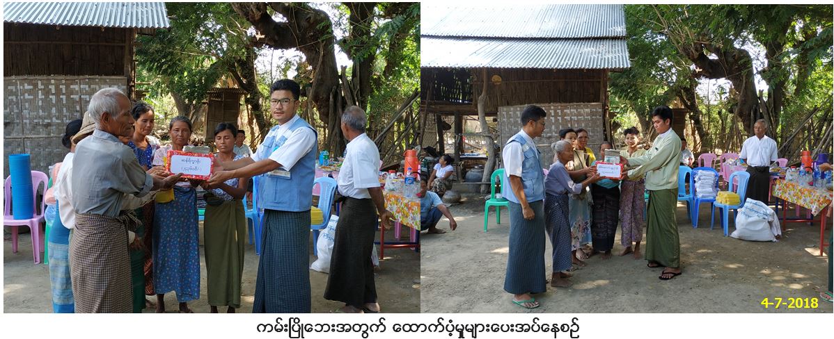 လူမှုဝန်ထမ်း၊ ကယ်ဆယ်ရေးနှင့် ပြန်လည်နေရာချထားရေးဝန်ကြီးဌာန၊ ဘေးအန္တရာယ်ဆိုင်ရာစီမံခန့်ခွဲမှုဦးစီးဌာန၊ ပခုက္ကူခရိုင်ဦးစီးမှူးရုံးမှ တာဝန်ရှိသူများသည် (၂၉/၃၀-၆-၂၀၁၈)ရက်နေ့တွင် ကမ်းပြိုဘေးဖြစ်ပေါ်ခဲ့သည့် ပခုက္ကူမြို့နယ်၊ ဆိက္ခဝကျေးရွာအုပ်စု၊ အနောက်သီရိ ကျေးရွာတွင် လူနေအိမ်(၄၁)လုံး ပြောင်းရွှေ့ခဲ့ရသဖြင့် ဘေးသင့်အိမ်ခြေ(၄၁)လုံး၊ အိမ်ထောင်စု(၄၁)စု၊ ဘေးသင့် လူဦးရေ(၁၁၆)ဦးတို့အား အိမ်ဆောက်ပစ္စည်းဖိုး (၄၁၀၀၀၀၀ိ/-)ကျပ်၊ ဆန်ရိက္ခာဖိုး (၂၄၃၆၀၀ိ/-) ကျပ်၊ ကယ်ဆယ်ရေးပစ္စည်း(၉)မျိုး၊ စုစုပေါင်း (၄၃၄၃၆၀၀ိ/-)(ကျပ်လေးဆယ့်သုံးသိန်းလေးသောင်းသုံးထောင့် ခြောက်ရာတိတိ)အား (၄-၇-၂၀၁၈)ရက်နေ့တွင် မြို့နယ်အထွေထွေအုပ်ချုပ်ရေးဦးစီးဌာနမှ ဒုတိယမြို့နယ်အုပ်ချုပ်ရေးမှူး ဦးတင်ထူးအောင်၊ ဌာနဆိုင်ရာများနှင့်အတူ ဘေးသင့်ပြည်သူများ၏ လက်ဝယ်အရောက် ထောက်ပံ့ပေးအပ်ခဲ့ ကြောင်း သတင်းရရှိပါသည်။