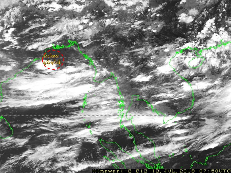 ယနေ့မြန်မာစံတော်ချိန် (၁၃:၃၀)နာရီအချိန် တိုင်းထွာချက်များအရ ဘင်္ဂလားပင်လယ်အော်အနောက်မြောက်ပိုင်းတွင် လေဖိအားနည်း ရပ်ဝန်းတစ်ခု ဖြစ်ပေါ်နေပါသည်။
