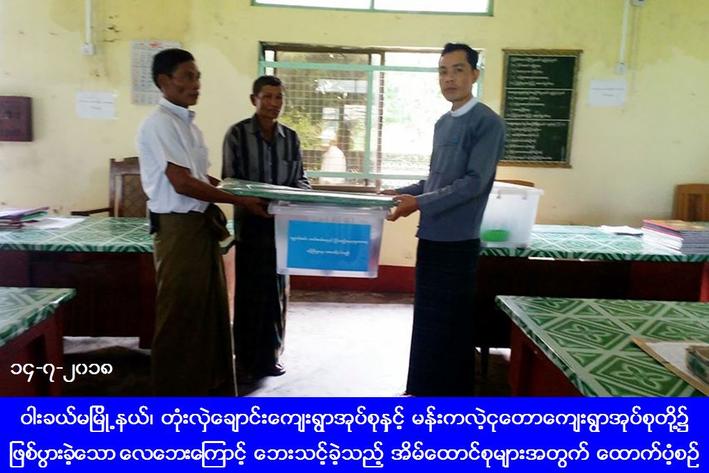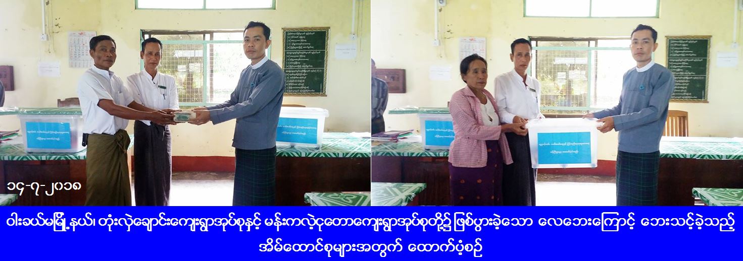 လူမှုဝန်ထမ်း၊ ကယ်ဆယ်ရေးနှင့် ပြန်လည်နေရာချထားရေးဝန်ကြီးဌာန၊ ဘေးအန္တရာယ်ဆိုင်ရာစီမံခန့်ခွဲမှုဦးစီးဌာန၊ မြောင်းမြခရိုင်ဦးစီးမှူးရုံးမှ တာဝန်ရှိသူများသည် ဝါးခယ်မမြို့နယ်၊ တုံးလှဲချောင်းကျေးရွာအုပ်စုနှင့် မန်းကလဲ့ငုတောကျေးရွာအုပ်စုတို့၌ (၁၂-၇-၂၀၁၈) ရက်နေ့၊ (၁၁း၀၀) နာရီအချိန်တွင် ဖြစ်ပွားခဲ့သောလေဘေးကြောင့် ပြိုကျပျက်စီးခဲ့သည့်အိမ်ထောင်စု (၅) စုအတွက် ကယ်ဆယ်ရေးပစ္စည်း (၁၆) မျိုးပါ (၅) အိမ်ထောင်စာ၊ အိမ်ဆောက်ပစ္စည်းဖိုးထောက်ပံ့ငွေ (၅၀၀၀၀၀ိ/-)နှင့် ဘေးသင့်ပြည်သူ (၂၂) ဦးအတွက် (၇) ရက်စာဆန်ဖိုးထောက်ပံ့ငွေ (၄၆၂၀၀ိ/-)၊ အမိုးလန်အိမ်ထောင်စု(၁)စုအတွက် ကယ်ဆယ်ရေးပစ္စည်းစက္ကူပုံးပါ(၁၁)မျိုး (၁) အိမ်ထောင်စာ၊ အိမ်ဆောက်ပစ္စည်းဖိုးထောက်ပံ့ငွေ(၅၀၀၀၀ိ/-)၊ လူဦးရေ(၆)ဦးအတွက် (၇)ရက်စာဆန်ဖိုးထောက်ပံ့ငွေ(၁၂၆၀၀ိ/-) စုစုပေါင်းရန်ပုံငွေ(၆၀၈၈၀၀ိ/-)အား (၁၄-၇-၂၀၁၈) ရက်နေ့တွင် (၀၉း၀၀) နာရီအချိန်တွင် ကွင်းဆင်းထောက်ပံ့ပေးခဲ့ကြောင်း သိရှိရပါသည်။