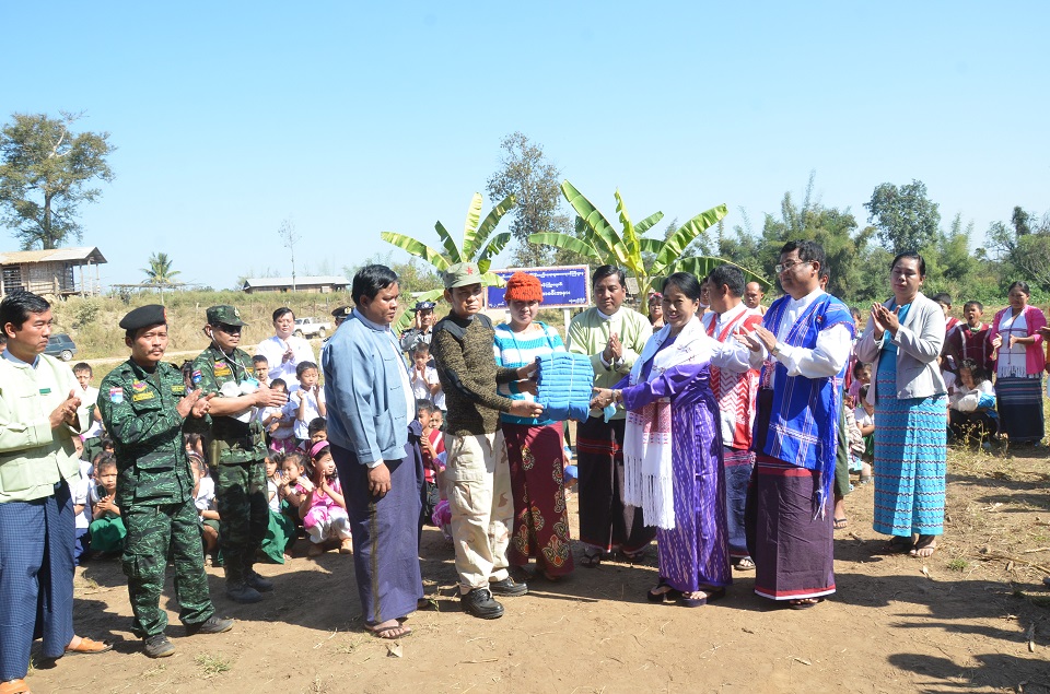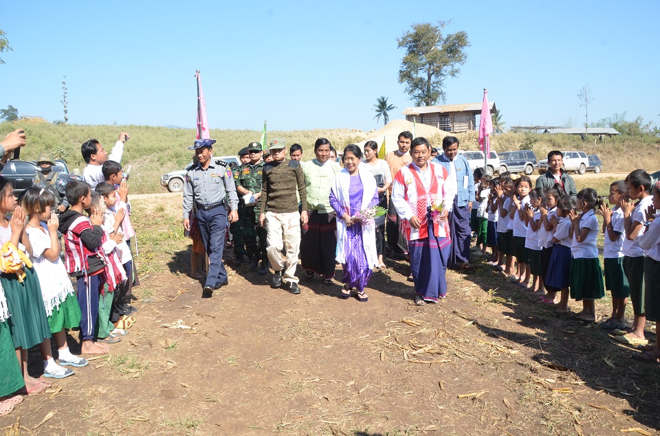 လူမှုကာကွယ်စောင့်ရှောက်ရေးဆိုင်ရာလုပ်ငန်းကော်မတီ ဥက္ကဌ၊ လူမှုဝန်ထမ်း၊ ကယ်ဆယ်ရေးနှင့် ပြန်လည်နေရာချထားရေးဝန်ကြီးဌာန၊ ပြည်ထောင်စုဝန်ကြီး ဒေါက်တာမြတ်မြတ်အုန်းခင်သည် ဖေဖော်ဝါရီလ (၁၄) ရက်နေ့၊ နံနက်ပိုင်းတွင် ကရင်ပြည်နယ်၊ မြဝတီခရိုင်၊ စုကလိမြို့၊ ဆုံဆည်းမြိုင်ကျေးရွာသို့ ကွင်းဆင်း၍ ဝန်ကြီးဌာနမှ (၂၀၀) သိန်းကျပ်ထောက်ပံ့မှုဖြင့် D.K.B.A ငြိမ်းချမ်းရေးဌာနချုပ်တွင် မူလတန်းကြိုကျောင်းဆောက်လုပ်ရန် ပန္နက်ရိုက်အခမ်းအနားသို့ တက်ရောက်ပါသည်။ အစီအစဉ်အရ သတ်မှတ်ထားသောနေရာတွင် ပြည်ထောင်စုဝန်ကြီး၊ ကရင်ပြည်နယ်အစိုးရအဖွဲ့ လူမှုရေးဝန်ကြီး ဦးချစ်လှိုင်၊ အမြဲတမ်းအတွင်းဝန် ဦးစိုးအောင်နှင့် D.K.B.A ငြိမ်းချမ်းရေးဌာန၊ ဗိုလ်ချုပ်ကြီး စောလားနွယ်တို့က ပန္နက်ရိုက်ပေးပြီး အမွှေးနံ့သာရည် ပက်ဖျန်းပေးပါသည်။ ဆက်လက်၍ သွပ်အချပ် (၁၅၀) နှင့် သွပ်ရိုက်သံများ၊ မိသားစုသုံးပစ္စည်းများ၊ အဝတ်အထည်များနှင့် တိုင်းရင်းဆေးဝါးများကို ထောက်ပံ့ပေးပါသည်။
