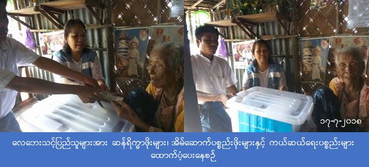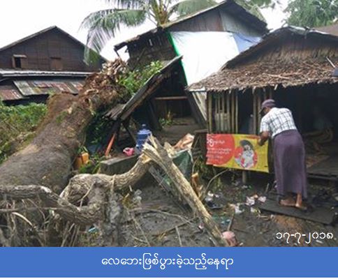 လူမှုဝန်ထမ်း၊ ကယ်ဆယ်ရေးနှင့် ပြန်လည်နေရာချထားရေးဝန်ကြီးဌာန၊ ဘေးအန္တရာယ်ဆိုင်ရာစီမံခန့်ခွဲမှုဦးစီးဌာန၊ ဖျာပုံခရိုင်ဦးစီးမှူးရုံးမှတာဝန်ရှိသူများသည် (၁၄-၇-၂၀၁၈) ရက်နေ့တွင် ဖျာပုံမြို့နယ်၊ အပြောင်ကျေးရွာတွင် လေပြင်းတိုက်ခတ်မှုကြောင့် သစ်ပင်နေအိမ်ပေါ်သို့လဲကျခဲ့ရာ နေအိမ်(၁) လုံး လဲပြိုပျက်စီးခဲ့ပါသည်။ အဆိုပါ နေအိမ်ရှိ အိမ်ထောင်စု (၁) စုအတွက် အိမ်ဆောက်ပစ္စည်းဖိုးငွေ (၁၀၀,၀၀၀) ကျပ် ၊ဆန်ဖိုးငွေ (၇) ရက်စာ (၂,၁၀၀) ကျပ်၊ (၁) အိမ်ထောင်စုစာ ကယ်ဆယ်ရေးပစ္စည်း (၁၅) မျိုး တို့ကို (၁၇-၇-၂၀၁၈) ရက်နေ့တွင် ကွင်းဆင်းသွားရောက်ထောက်ပံ့ ပေးခဲ့ကြောင်း သိရှိရပါသည်။