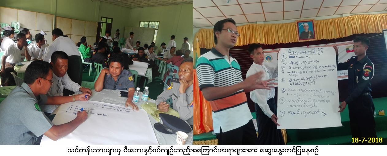 လူမှုဝန်ထမ်း၊ ကယ်ဆယ်ရေးနှင့်ပြန်လည်နေရာချ ထားရေးဝန်ကြီးဌာန၊ ဘေးအန္တရာယ်ဆိုင်ရာ စီမံခန့့်ခွဲမှုဦးစီးဌာန၊ ကျိုင်းတုံခရိုင်ဦးစီးမှူးရုံးမှ တာဝန်ရှိသူများသည် (၁၈.၇.၂၀၁၈)ရက်နေ့ နံနက် (၀၈း၃၀)နာရီမှ (၁၆း၃၀)နာရီထိ၊ မိုင်းယန်းမြို့နယ် ထွေ/အုပ်အစည်းအဝေးခန်းမတွင် မြို့နယ်အဆင့် သဘာဝဘေးလျော့ပါးရေးအလုပ်ရုံဆွေးနွေးပွဲကို ကျင်းပပြုလုပ်ခဲ့ပါသည်။ အဆိုပါ အလုပ်ရုံဆွေးနွေးပွဲသို့ မိုင်းယန်းမြို့နယ် လွတ်တော်ကိုယ်စားလှယ်များ၊ ဌာနဆိုင်ရာများ၊ ရပ်ကွက်ကျေးရွာအုပ်ချုပ်ရေးမှူးများ၊ လူမှုရေးအသင်းအဖွဲ့များ၊ မီးသတ်တပ်ဖွဲ့ဝင်များ၊ အရံ မီးသတ်တပ်ဖွဲ့ဝင်များ၊ ကြက်ခြေနီကော်မတီ ဝင်များနှင့် မြို့မိ၊ မြို့ဖ စုစုပေါင်း (၈၀)ဦး တက်ရောက် ခဲ့ကြောင်း သတင်းရရှိပါသည်။