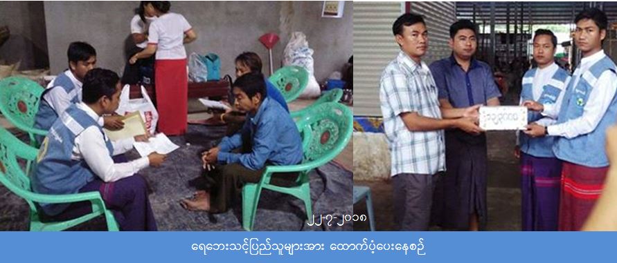 ကရင်ပြည်နယ်၊ မြဝတီခရိုင်၊ မြဝတီမြို့တွင် (၂၀.၇.၂၀၁၈) ရက်နေ့ (၂၂း၃၀)အချိန်မှစ၍ သောင်ရင်းမြစ်ရေမြင့် တက်မှုကြောင့် မြဝတီမြို့ အမှတ်(၂/၄/၅) ရပ်ကွက်ရှိအိမ်ထောင်စုများအား အမှတ် (၅)ရပ်ကွက်၊ ကျွန်းတော ဈေး၊ အမှတ်(၄) ရပ်ကွက်၊ ကျောက်ဖျာဓမ္မာရုံ၊ အမှတ်(၂) ရပ်ကွက် ကိုးနဝင်းဘုန်းကြီးကျောင်းသို့ ပြောင်းရွှေ့ထားပြီး အဆိုပါ ရေဘေးသင့်ပြည်သူများအား လူမှုဝန်ထမ်း၊ ကယ်ဆယ်ရေးနှင့် ပြန်လည်နေရာချထားရေးဝန်ကြီးဌာန၊ ဘေးအန္တရာယ်ဆိုင်ရာ စီမံခန့်ခွဲမှုဦးစီးဌာန၊ မြဝတီခရိုင်ဦးစီးမှူးရုံးမှ တာဝန်ရှိသူများသည် အိမ်ထောင်စု (၁၀၂)စု၊ ကျား (၂၃၉)၊ မ(၂၇၈) ပေါင်း (၅၁၇) ဦးအတွက် တစ်ဦးလျှင် ရေသန့် (၂)ဘူးနှင့် ဆန်ရိက္ခာ (၇)ရက်စာ (၁,၃၂၃,၀၀၀)ကျပ်တို့ကို ထောက်ပံ့ပေးအပ်ခဲ့ ကြောင်း သတင်းရရှိပါသည်။