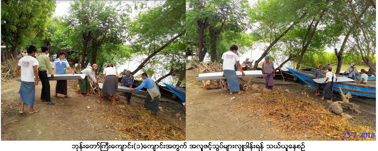 လူမှုဝန်ထမ်း၊ ကယ်ဆယ်ရေးနှင့်ပြန်လည်နေရာချထားရေးဝန်ကြီးဌာန၊ ဘေးအန္တရာယ်ဆိုင်ရာစီမံခန့်ခွဲမှုဦးစီးဌာန၊ မကွေးတိုင်းဒေသကြီးဦးစီး မှူးရုံးမှ တာဝန်ရှိသူများသည် ပွင့်ဖြူမြို့နယ်၊ မြင်းခြံစုကျေးရွာတွင် (၆-၆-၂၀၁၈)ရက်နေ့တွင် ဖြစ်ပွားခဲ့သော ကမ်းပြိုဘေးကြောင့် ဘုန်းတော်ကြီးကျောင်း(၁)ကျောင်းပြောင်းရွှေ့ခဲ့ရပြီး ဘုန်းတော်ကြီးကျောင်း(၁)ကျောင်းအတွက် ကျောင်းဆောက်ပစ္စည်းဖိုး (၁၀၀,၀၀၀/-)ကျပ်၊ အလူဇင့် (၇)ပေ သွပ်(၁၅၀)ချပ်တို့အား (၂၃-၇-၂၀၁၈)ရက်နေ့တွင် အထွေထွေအုပ်ချုပ်ရေးဦးစီးဌာနမှ တာဝန်ရှိသူများနှင့်အတူ ဘေးသင့်ပြည်သူများ လက်ဝယ်အရောက် သွားရောက်ထောက်ပံ့ပေးအပ်ခဲ့ကြောင်း သတင်းရရှိပါသည်။