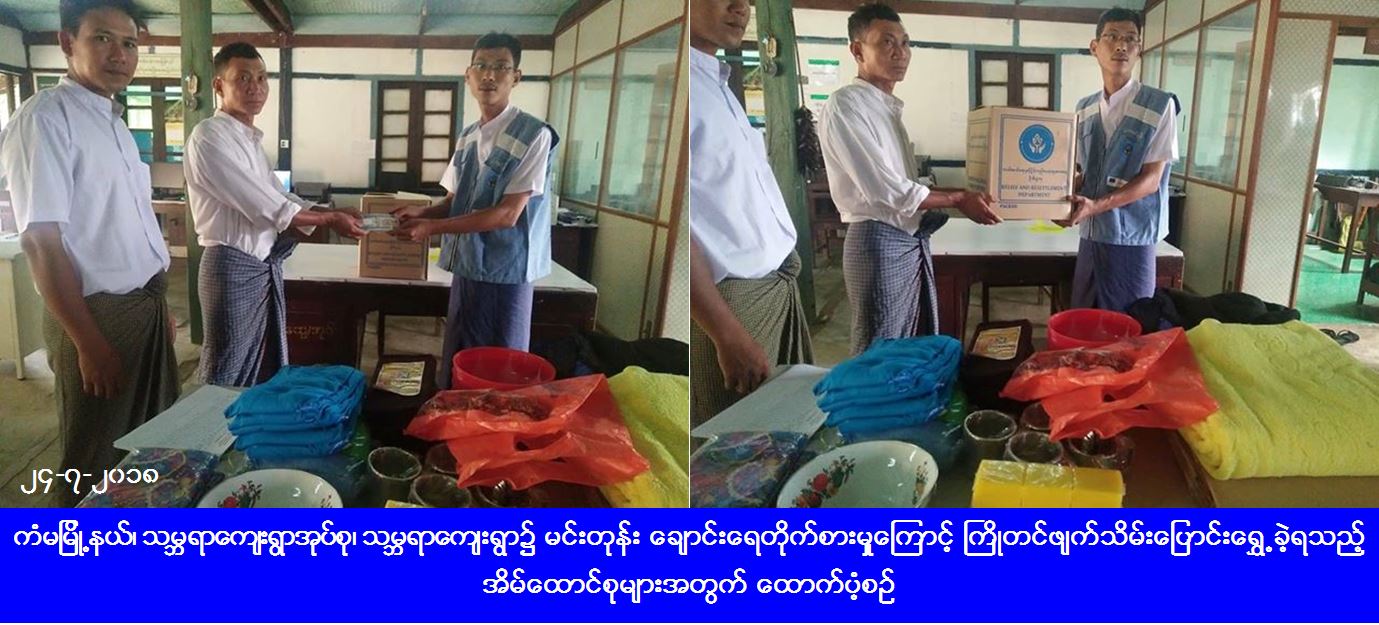 လူမှုဝန်ထမ်း၊ ကယ်ဆယ်ရေးနှင့် ပြန်လည်နေရာချထားရေးဝန်ကြီးဌာန၊ ဘေးအန္တရာယ်ဆိုင်ရာစီမံခန့်ခွဲမှုဦးစီးဌာန၊ သရက်ခရိုင်ဦးစီးမှူးရုံးမှ တာဝန်ရှိသူများသည် ကံမမြို့နယ်၊ သမ္ဘရာကျေးရွာအုပ်စု၊ သမ္ဘရာကျေးရွာ၌ (၂၁.၇.၂၀၁၈) ရက်နေ့၊ (၁၆း၁၅) နာရီအချိန်တွင် မင်းတုန်း ချောင်းရေတိုက်စားမှုကြောင့် ဘေးသင့်ခဲ့သည့်နေအိမ်(၅)လုံးအား ကြိုတင်ဖျက်သိမ်းပြောင်းရွှေ့ခဲ့ပြီး အိမ်ထောင်စု(၅)စု၊ လူဦးရေစုစုပေါင်း(၂၂)ဦး ဘေးသင့်ခဲ့ရာ အဆိုပါဘေးသင့်လူဦးရေ(၂၂)ဦးအတွက် ဆန်ရိက္ခာဖိုး(၇)ရက်စာ (၄၆၂၀၀ိ/-)၊ နေအိမ်(၅)လုံးအတွက် အိမ်ဆောက်ပစ္စည်းဖိုး (၅၀၀၀၀၀ိ/-)၊ ထောက်ပံ့ရန်ပုံငွေစုစုပေါင်း (၅၄၆၂၀၀ိ/-)၊ ကယ်ဆယ်ရေးပစ္စည်း(၉)မျိုး (၅)အိမ်ထာင်စာတို့အား (၂၄-၇-၂၀၁၈) ရက်နေ့တွင် ကံမမြို့နယ်အထွေထွေအုပ်ချုပ်ရေးဦးစီးဌာနမှ တာဝန်ရှိသူများလက်ဝယ်သို့ လွှဲပြောင်းထောက်ပံ့ပေးအပ်ခဲ့ကြောင်း သိရှိရပါသည်။