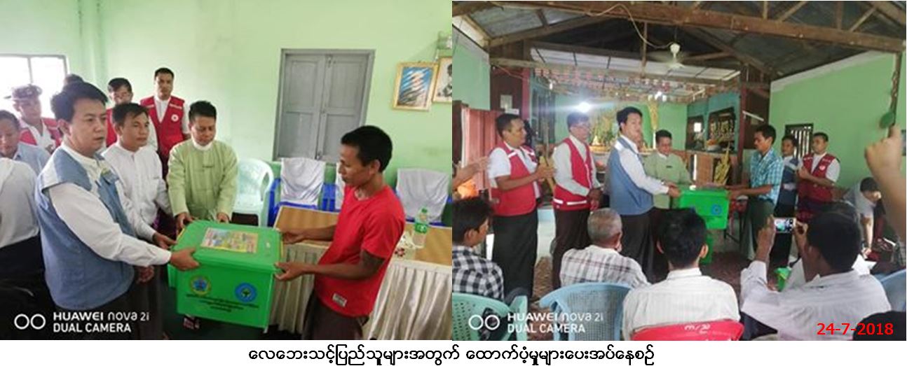 လူမှုဝန်ထမ်း၊ ကယ်ဆယ်ရေးနှင့်ပြန်လည်နေရာချထားရေးဝန်ကြီးဌာန၊ ဘေးအန္တရာယ်ဆိုင်ရာစီမံခန့်ခွဲမှုဦးစီးဌာန၊ ရန်ကုန်တိုင်းဒေသကြီးဦးစီး မှူးရုံးမှ တာဝန်ရှိသူများသည် (၂၁.၇.၂၀၁၈)ရက်နေ့တွင် ရန်ကုန်တိုင်းဒေသကြီး၊ တောင်ပိုင်းခရိုင်၊ သုံးခွမြို့နယ်၊ လက်ပန်နန်း ခလဲ ကျေးရွာ အုပ်စု၊ နန်းခလဲကျေးရွာနှင့် စပါယ်ချောင်းကျေးရွာအုပ်စု၊ ညောင်လေးပင်ကျေးရွာတို့တွင် လေပြင်းတိုက်ခတ်မှုကြောင့် နေအိမ်(၄)လုံးပြိုကျ ပျက်စီး၊ နေအိမ်(၈)လုံး အမိုးလန်တစ်စိတ်တစ်ပိုင်းပျက်စီးခဲ့ပြီး အိမ်ထောင်စု(၁၂)စုမှ လူဦးရေ(၃၄)ဦးတို့ လေဘေးသင့်ခဲ့ပါသဖြင့် ဘေးသင့် ပြည်သူများထံ အိမ်ဆောက်ပစ္စည်းဖိုး (၁၁၃၅၀၀၀/-)ကျပ်၊ ဆန်ရိက္ခာ(၇)ရက်စာဖိုး (၇၁၄၀၀/-)ကျပ်နှင့် ကယ်ဆယ်ရေးပစ္စည်း(၁၁)မျိုး (၁၂) အိမ်ထောင်စုစာတို့အား (၂၄.၇.၂၀၁၈)ရက်နေ့ (၁၀း၀၀)နာရီချိန်တွင် သွားရောက်ထောက်ပံ့ပေးခဲ့ကြောင်း သတင်းရရှိပါသည်။