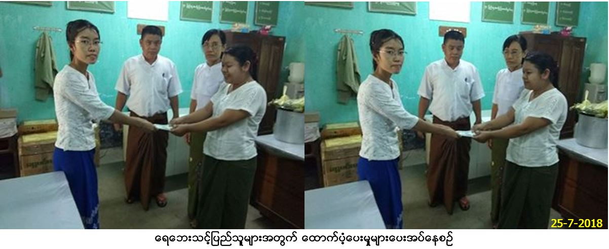 လူမှုဝန်ထမ်း၊ ကယ်ဆယ်ရေးနှင့် ပြန်လည်နေရာချထားရေးဝန်ကြီးဌာန၊ ဘေးအန္တရာယ်ဆိုင်ရာစီမံခန့်ခွဲမှုဦးစီးဌာန၊ သရက်ခရိုင်ဦးစီးမှူးရုံးမှ တာဝန်ရှိသူများသည် သရက်မြို့နယ်၊ ထုံးတောင်ကျေးရွာအုပ်စု၊ လေးတိုင်စင်ကျေးရွာတွင် (၂၀.၇.၂၀၁၈)ရက်နေ့နှင့် (၂၂.၇.၂၀၁၈)ရက် နေ့တို့၌ ဧရာဝတီမြစ်ရေဝင်ရောက်မှုကြောင့် ဘေးလွှတ်ရာ ရွှေမုဌောဘုရားဝန်းသို့ပြောင်းရွှေ့နေထိုင်ခဲ့သော အိမ်ခြေ(၁၄)စု၊ အိမ်ထောင်စု (၁၄)စုတို့အတွက် ငါးသေတ္တာဖိုး (၁၂၆၀၀ိ/-)ကျပ်တို့အား (၂၅.၇.၂၀၁၈)ရက်နေ့တွင် သရက်မြို့နယ်အထွေထွေအုပ်ချုပ်ရေးဦးစီးဌာနမှ တာဝန်ရှိသူများလက်ဝယ်သို့ ထပ်မံသွားရောက်ထောက်ပံ့ပေးအပ်ခဲ့ကြောင်း သတင်းရရှိပါသည်။