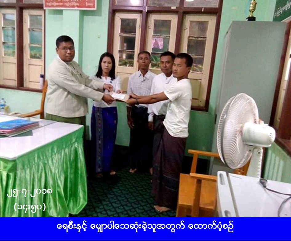မြိတ်ခရိုင် ပုလောမြို့နယ်အတွင်း မိုးသည်းထန်စွာရွာသွန်းပြီး ချောင်းရေစီးသန်မှုကြောင့် တိုကျေးရွာအုပ်စု ပိတပ်ကျေးရွာနှင့် လက္ကူးကျေးရွာအုပ်စု မြဒေါင်ကျေးရွာချင်းဆက် ကိုယ်ထူကိုယ်ထယာယီဝါးတံတားသည် (၁၈-၇-၂၀၁၈) ရက်နေ့တွင် တံတားအလယ်မှ ပေ(၅၀)ခန့် ရေစီးနှင့်မျှောပါသွားခဲ့ရာ ပျက်စီးသွားသော တံတားအပိုင်းအစများသည် ပိတပ်ဘက်ရှိ ချောင်းနံဘေးသို့ စုပုံမျှောလာသဖြင့် ကမ်းနံဘေးတွင် ရပ်နားထားသည့်စက်လှေပေါ်တွင်ရှိသော ဦးစိုးသန်းသည် ၎င်းအပိုင်းအစများကို ဖယ်ရှားရာမှ ရေစီးနှင့်မျှောပါသွားခဲ့ပြီး (၂၁-၇-၂၀၁၈) ရက်နေ့တွင် သေဆုံးလျက်ပြန်လည်တွေ့ရှိခဲ့ရာ အဆိုပါသေဆုံးသူဦးစိုးသန်းအတွက် လူမှုဝန်ထမ်း၊ ကယ်ဆယ်ရေးနှင့် ပြန်လည်နေရာချထားရေးဝန်ကြီးဌာန၊ ဘေးအန္တရာယ်ဆိုင်ရာစီမံခန့်ခွဲမှုဦးစီးဌာန၊ မြိတ်ခရိုင်ဦးစီးမှူးရုံးမှ တာဝန်ရှိသူများသည် နာရေးထောက်ပံ့ငွေကျပ် (၃၀၀၀၀၀) အား (၂၅-၇-၂၀၁၈) ရက်နေ့၊ နေ့လည် (၁၄း၅၀) နာရီအချိန်တွင် ထောက်ပံ့ပြီးစီးပြီးဖြစ်ကြောင်း သိရှိရပါသည်။